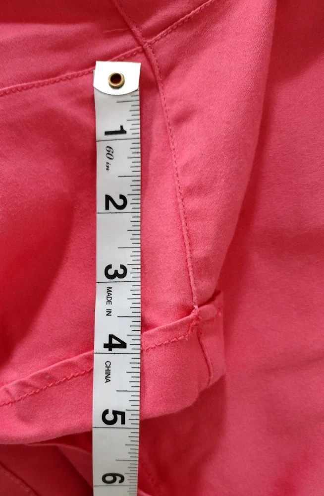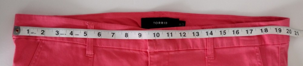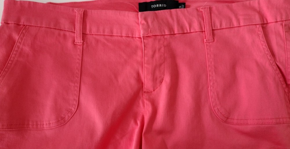 Upgrade your summer wardrobe with these stylish Torrid Orange Mid Rise Stretch Cuffed Shorts. The bright and modern design is perfect for beach and casual occasions. The solid pattern and orange color are complemented by spandex and cotton material for comfort and blended fabric for a durable wear. Featuring a flat front and mid-rise, these chino-style shorts have a 40-inch waist size and 18 size fit for plus size women. The zipper closure and cuffed hem give accents to the overall design, while the pockets provide practicality for walking, driving, and hiking activities. Made in China, these pre-owned shorts are perfect for those who love a classic summer look. Shipped with USPS Ground Advantage.