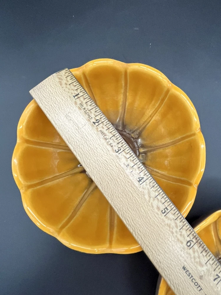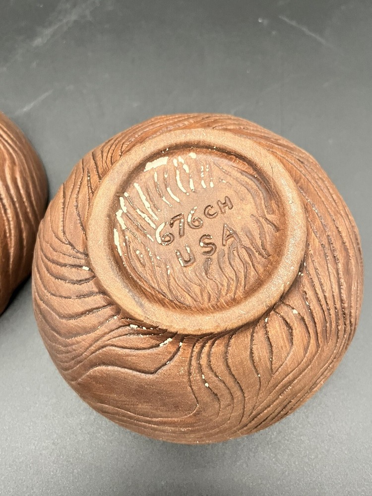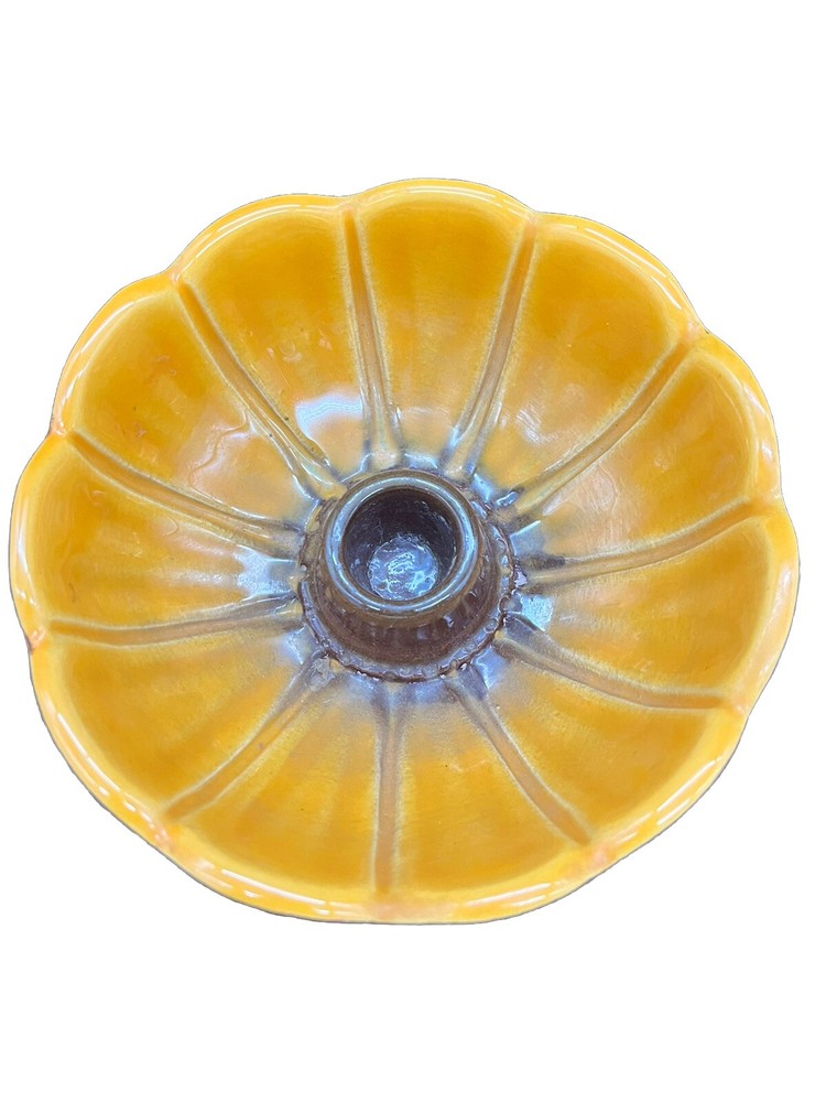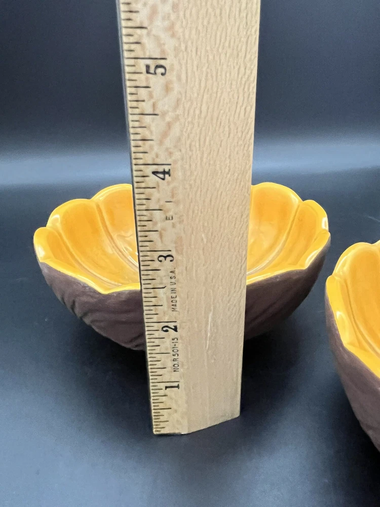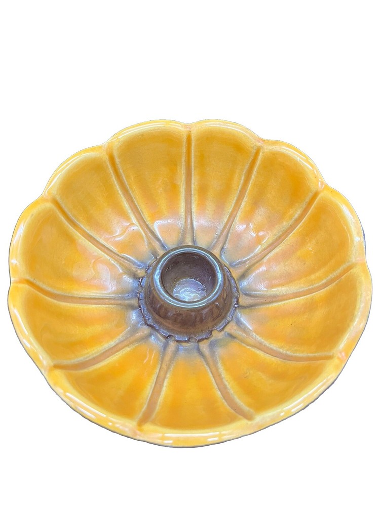 Add a touch of vintage charm to your home with these Treasure Craft Retro MCM Candle Holders. The round ceramic candle holders feature a glossy interior finish and a colorful floral pattern that will complement any retro or vintage style. The exterior is a matte brown color. Measuring 5.25 inches in diameter and 2.5” tall, these candle holders are perfect for creating a cozy and inviting atmosphere in any room. The package includes two candle holders, making it ideal for displaying on either side of your bed or in a decorative dish. Add a touch of nostalgia to your home with these 1960's era candle holders that are sure to become a treasured part of your collection. These can also be used a small bowls as shown in pictures. Please see detailed photos to help you determine condition. This are in good vintage condition with no chips, cracks or breaks. Some of the exterior surface has flaked.