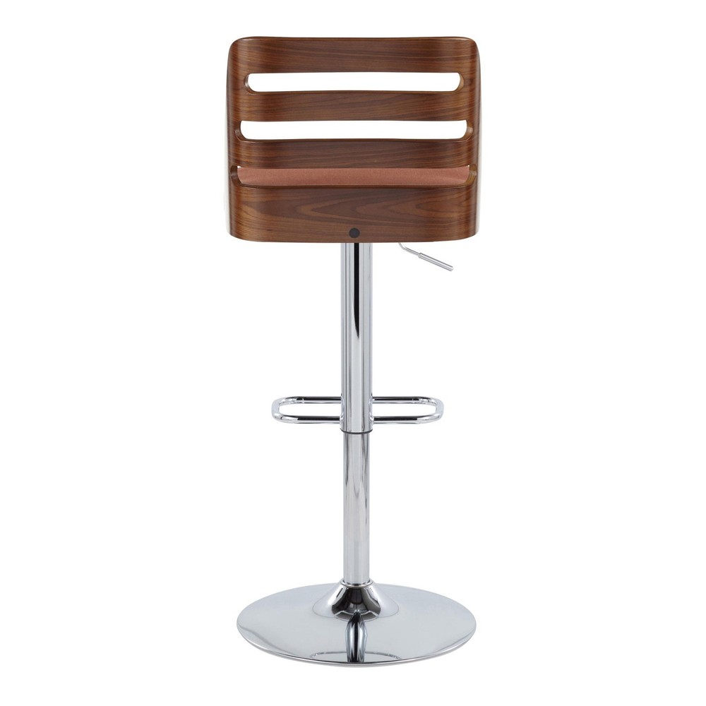 Specifications Place of Origin China Main Color Orange Main Material Fabric Dangerous Goods #dangerFlag# Dimensions & Weights Assembled Length (in.) 19.25 Assembled Width (in.) 17.50 Assembled Height (in.) 43.50 Weight (lbs) 18.00 Product Features Our modern take on the signature ladder-back design will make a strong presentation in any setting. The LumiSource Trevi Adjustable Barstool will have family and friends lingering, whether dining or just socializing. The upholstered seat, available in various color options, is contrasted by a gorgeous geometrical bent wood backrest. The Trevi Barstool will make a stylish addition to any kitchen or bar area. Mid-century modern styling Adjustable height with 360-degree swivel Padded fabric upholstered seat Chrome base with rounded rectangle footrest Includes two barstools PRICED AND SOLD IN PAIRS; Indoor use only, 250 lbs. weight limit (each), Assembly required. Description