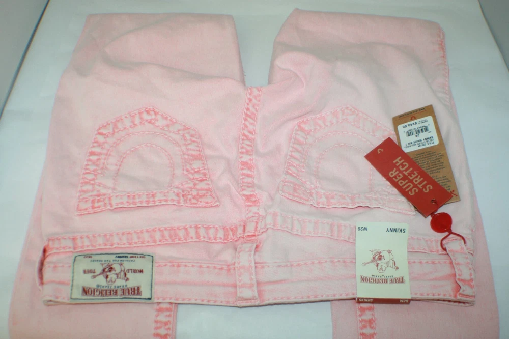 TRUE RELIGION FABULOUS PAPAYA SUPER STRETCH SKINNY JEANS SZ 28 APPROXIMATE MEASUREMENTS: WAIST LAYING FLAT ACROSS (UNSTRETCHED) ~ 14.5" LENGTH ~ 39" INSEAM ~ 31" BRAND NEW NWT ~ $249 ITEM IS FROM A SMOKE FREE HOME :) THANKS FOR LOOKING AT ANOTHER FAB FIND!!! LIVE LIFE FAB
