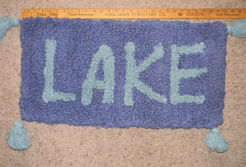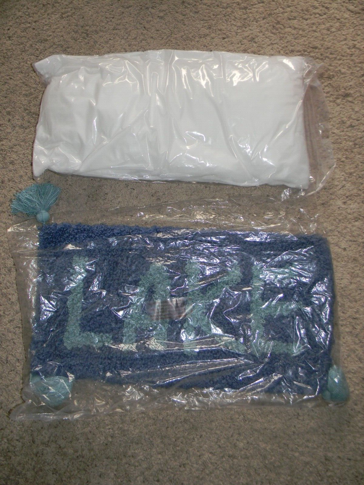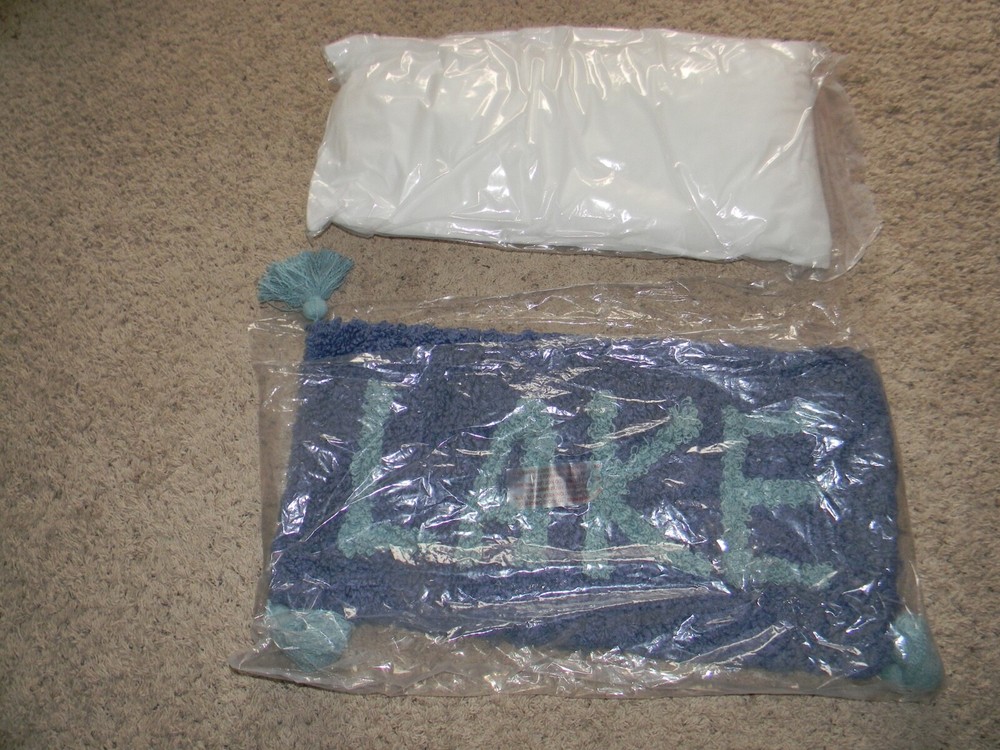 Tufted Cotton LAKE Throw Pillow with Pillow Insert 28" x 14" Lake House Decor Hidden zipper across back. Comes with pillow insert that is still sealed. Please view pictures and utilize the enlarge features for most accurate condition description.