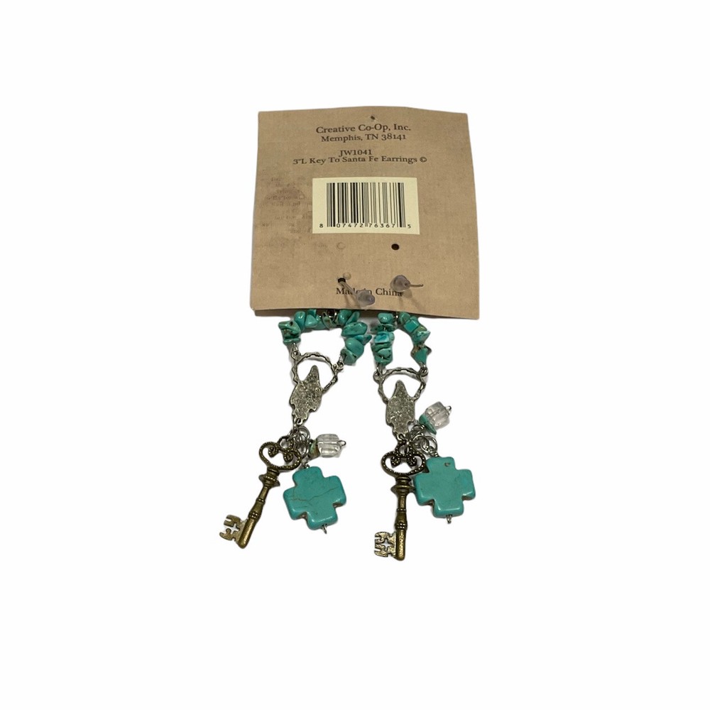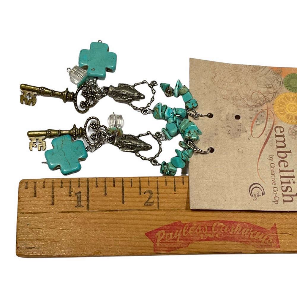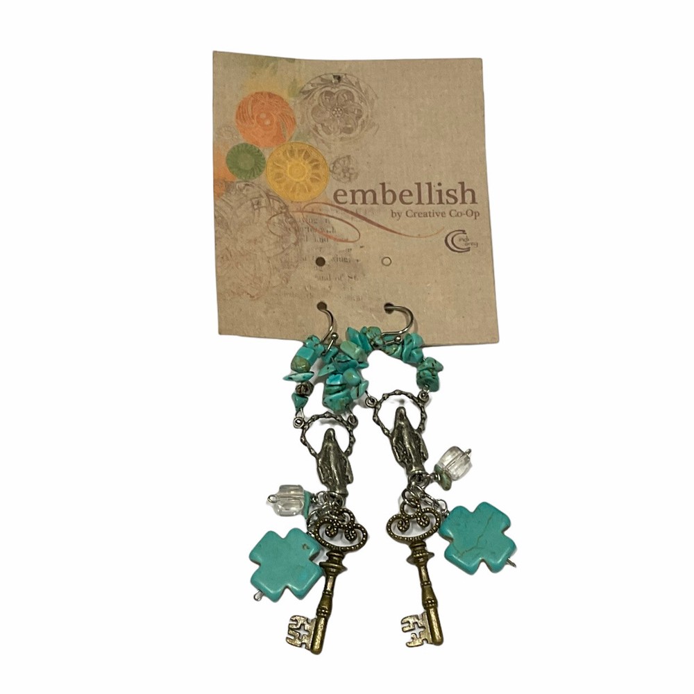 Turquoise Color Dangle Earrings Religious Cross Madonna Embellish Creative Co-op. New with tags.