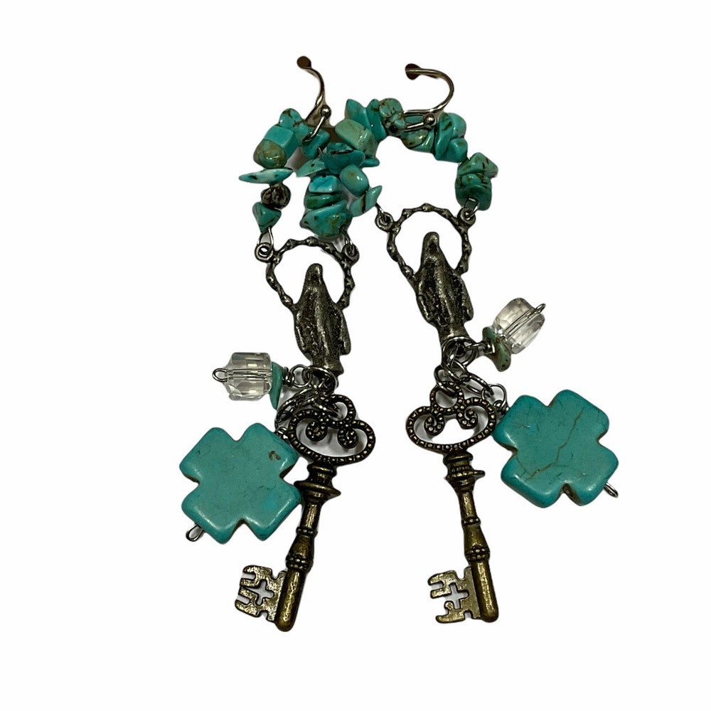 Turquoise Color Dangle Earrings Religious Cross Madonna Embellish Creative Co-op. New with tags....