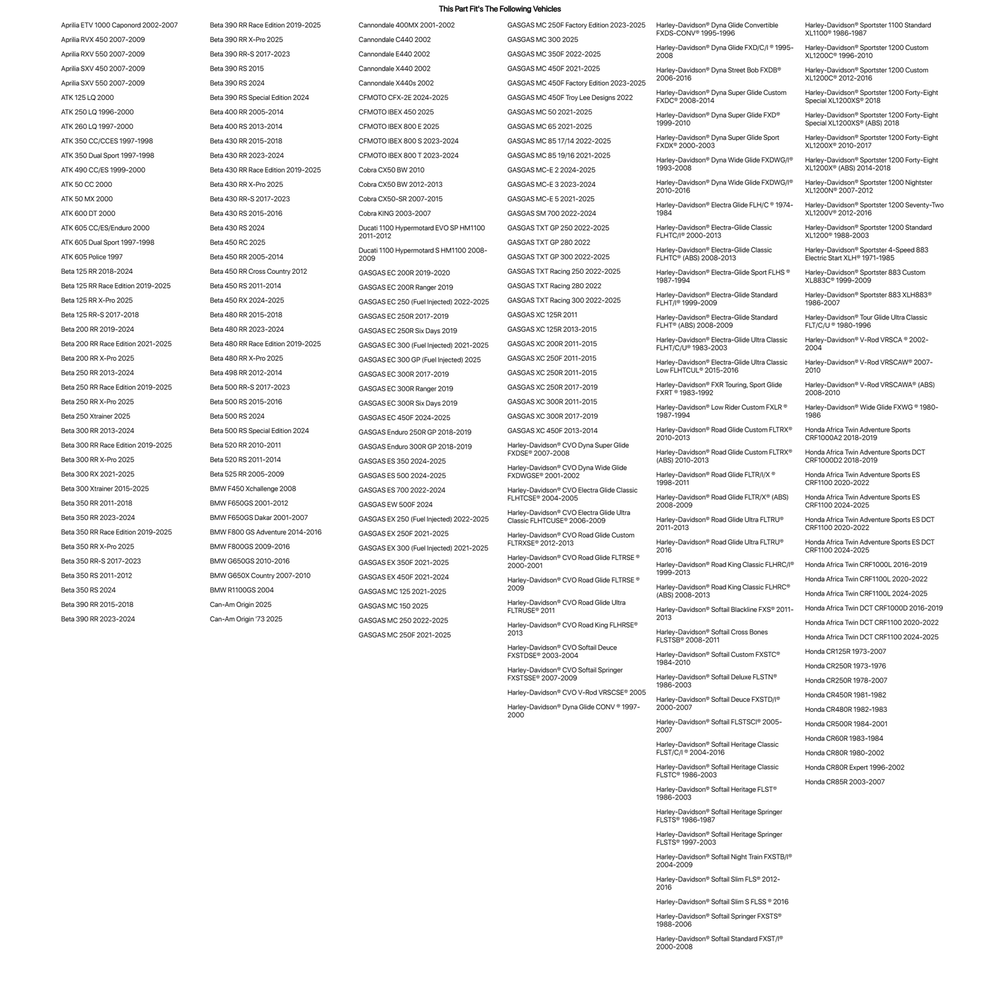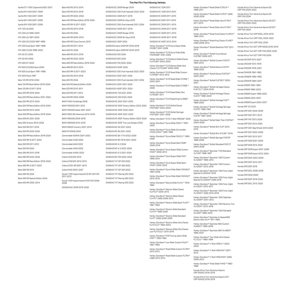 Tires & Wheels Parts & Accessories Casual Riding Gear Body Drive All Items See our eBay store for more great items >> Shop Categories Casual Parts & Accessories Body Drive Tires and Wheels Riding Gear Tusk Rubber Valve Support/Seal Orange For YAMAHA Mid-Virago XV750M 1983 Item Description The Tusk Rubber Valve Support/Seal is perfect for just about any motorcycle. The Tusk Rubber valve stem support replaces the valve stem nut on motorcycle wheels and prevents valve stem damage if the tire slips on the rim. The rubber support fits snug around the valve stem and rests against the rim to help prevent mud and water from entering the wheel. This type of rubber support comes stock on several Honda motorcycles including the CR and CRF motorcycle models. The Tusk support makes a great replacement on a Honda motorcycle or a great upgrade on other bikes. Rubber valve stem support replaces the valve stem nut on motorcycle wheels and prevents valve stem damage if the tire slips on the rim. Rubber support fits snug around the valve stem and rests against the rim to help prevent mud and water from entering the wheel. Works great on almost all motorcycles. Sold in pair. Also Fits APRILIA ETV 1000 Caponord 2002-2007 APRILIA RVX 450 2007-2009 APRILIA RXV 550 2007-2009 APRILIA SXV 450 2007-2009 APRILIA SXV 550 2007-2009 ATK 125 LQ 2000 ATK 250 LQ 1996-2000 ATK 260 LQ 1997-2000 ATK 350 CC/CCES 1997-1998 ATK 350 Dual Sport 1997-1998 ATK 490 CC/ES 1999-2000 ATK 50 CC 2000 ATK 50 MX 2000 ATK 600 DT 2000 ATK 605 CC/ES/Enduro 2000 ATK 605 Dual Sport 1997-1998 ATK 605 Police 1997 BETA 125 RR 2018-2024 BETA 125 RR Race Edition 2019-2024 BETA 125 RR-S 2017-2018 BETA 200 RR 2019-2024 BETA 200 RR Race Edition 2021-2024 BETA 250 RR 2013-2024 BETA 250 RR Race Edition 2019-2024 BETA 300 RR 2013-2024 BETA 300 RR Race Edition 2019-2024 BETA 300 RX 2021-2024 BETA 300 Xtrainer 2015-2025 BETA 350 RR 2011-2018,2023-2024 BETA 350 RR Race Edition 2019-2024 BETA 350 RR-S 2017-2023 BETA 350 RS 2011-2012,2024 BETA 390 RR 2015-2018,2023-2024 BETA 390 RR Race Edition 2019-2024 BETA 390 RR-S 2017-2023 BETA 390 RS 2015,2024 BETA 390 RS Special Edition 2024 BETA 400 RR 2005-2014 BETA 400 RS 2013-2014 BETA 430 RR 2015-2018,2023-2024 BETA 430 RR Race Edition 2019-2024 BETA 430 RR-S 2017-2023 BETA 430 RS 2015-2016,2024 BETA 450 RR 2005-2014 BETA 450 RR Cross Country 2012 BETA 450 RS 2011-2014 BETA 450 RX 2024 BETA 480 RR 2015-2018,2023-2024 BETA 480 RR Race Edition 2019-2024 BETA 498 RR 2012-2014 BETA 500 RR-S 2017-2023 BETA 500 RS 2015-2016,2024 BETA 500 RS Special Edition 2024 BETA 520 RR 2010-2011 BETA 520 RS 2011-2014 BETA 525 RR 2005-2009 BMW F450 Xchallenge 2008 BMW F650GS 2001-2012 BMW F650GS Dakar 2001-2007 BMW F800 GS Adventure 2014-2016 BMW F800GS 2009-2016 BMW G650GS 2010-2016 BMW G650X Country 2007-2010 BMW R1100GS 2004 CANNONDALE 400MX 2001-2002 CANNONDALE C440 2002 CANNONDALE E440 2002 CANNONDALE X440 2002 CANNONDALE X440s 2002 COBRA CX50 BW 2010,2012-2013 COBRA CX50-SR 2007-2015 COBRA KING 2003-2007 DUCATI 1100 Hypermotard EVO SP HM1100 2011-2012 DUCATI 1100 Hypermotard S HM1100 2008-2009 GASGAS EC 200R 2019-2020 GASGAS EC 200R Ranger 2019 GASGAS EC 250 (Fuel Injected) 2022-2024 GASGAS EC 250R 2017-2019 GASGAS EC 250R Six Days 2019 GASGAS EC 300 (Fuel Injected) 2021-2024 GASGAS EC 300R 2017-2019 GASGAS EC 300R Ranger 2019 GASGAS EC 300R Six Days 2019 GASGAS EC 450F 2024 GASGAS Enduro 250R GP 2018-2019 GASGAS Enduro 300R GP 2018-2019 GASGAS ES 350 2024 GASGAS ES 500 2024 GASGAS ES 700 2022-2024 GASGAS EW 500F 2024 GASGAS EX 250 (Fuel Injected) 2022-2025 GASGAS EX 250F 2021-2025 GASGAS EX 300 (Fuel Injected) 2021-2024 GASGAS EX 350F 2021-2025 GASGAS EX 450F 2021-2024 GASGAS MC 125 2021-2025 GASGAS MC 150 2025 GASGAS MC 250 2022-2024 GASGAS MC 250F 2021-2025 GASGAS MC 250F Factory Edition 2023-2024 GASGAS MC 350F 2022-2025 GASGAS MC 450F 2021-2024 GASGAS MC 450F Factory Edition 2023-2024 GASGAS MC 450F Troy Lee Designs 2022 GASGAS MC 50 2021-2025 GASGAS MC 65 2021-2025 GASGAS MC 85 17/14 2022-2024 GASGAS MC 85 19/16 2021-2024 GASGAS MC-E 2 2024 GASGAS MC-E 3 2023-2024 GASGAS MC-E 5 2021-2024 GASGAS SM 700 2022-2024 GASGAS TXT GP 250 2022 GASGAS TXT GP 280 2022 GASGAS TXT GP 300 2022 GASGAS TXT Racing 250 2022 GASGAS TXT Racing 280 2022 GASGAS TXT Racing 300 2022 GASGAS XC 125R 2011,2013-2015 GASGAS XC 200R 2011-2015 GASGAS XC 250F 2011-2015 GASGAS XC 250R 2011-2015,2017-2019 GASGAS XC 300R 2011-2015,2017-2019 GASGAS XC 450F 2013-2014 HARLEY-DAVIDSON® CVO Dyna Super Glide FXDSE® 2007-2008 HARLEY-DAVIDSON® CVO Dyna Wide Glide FXDWGSE® 2001-2002 HARLEY-DAVIDSON® CVO Electra Glide Classic FLHTCSE® 2004-2005 HARLEY-DAVIDSON® CVO Electra Glide Ultra Classic FLHTCUSE® 2006-2009 HARLEY-DAVIDSON® CVO Road Glide Custom FLTRXSE® 2012-2013 HARLEY-DAVIDSON® CVO Road Glide FLTRSE ® 2000-2001,2009 HARLEY-DAVIDSON® CVO Road Glide Ultra FLTRUSE® 2011 HARLEY-DAVIDSON® CVO Road King FLHRSE® 2013 HARLEY-DAVIDSON® CVO Softail Deuce FXSTDSE® 2003-2004 HARLEY-DAVIDSON® CVO Softail Springer FXSTSSE® 2007-2009 HARLEY-DAVIDSON® CVO V-Rod VRSCSE® 2005 HARLEY-DAVIDSON® Dyna Glide CONV ® 1997-2000 HARLEY-DAVIDSON® Dyna Glide Convertible FXDS-CONV® 1995-1996 HARLEY-DAVIDSON® Dyna Glide FXD/C/I ® 1995-2008 HARLEY-DAVIDSON® Dyna Street Bob FXDB® 2006-2016 HARLEY-DAVIDSON® Dyna Super Glide Custom FXDC® 2008-2014 HARLEY-DAVIDSON® Dyna Super Glide FXD® 1999-2010 HARLEY-DAVIDSON® Dyna Super Glide Sport FXDX® 2000-2003 HARLEY-DAVIDSON® Dyna Wide Glide FXDWG/I® 1993-2008,2010-2016 HARLEY-DAVIDSON® Electra Glide FLH/C ® 1974-1984 HARLEY-DAVIDSON® Electra-Glide Classic FLHTC/I® 2000-2013 HARLEY-DAVIDSON® Electra-Glide Classic FLHTC® (ABS) 2008-2013 HARLEY-DAVIDSON® Electra-Glide Sport FLHS ® 1987-1994 HARLEY-DAVIDSON® Electra-Glide Standard FLHT/I® 1999-2009 HARLEY-DAVIDSON® Electra-Glide Standard FLHT® (ABS) 2008-2009 HARLEY-DAVIDSON® Electra-Glide Ultra Classic FLHT/C/U® 1983-2003 HARLEY-DAVIDSON® Electra-Glide