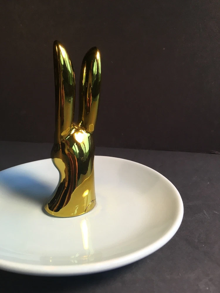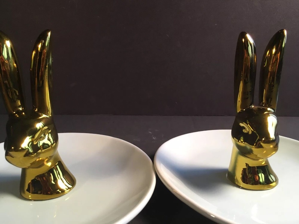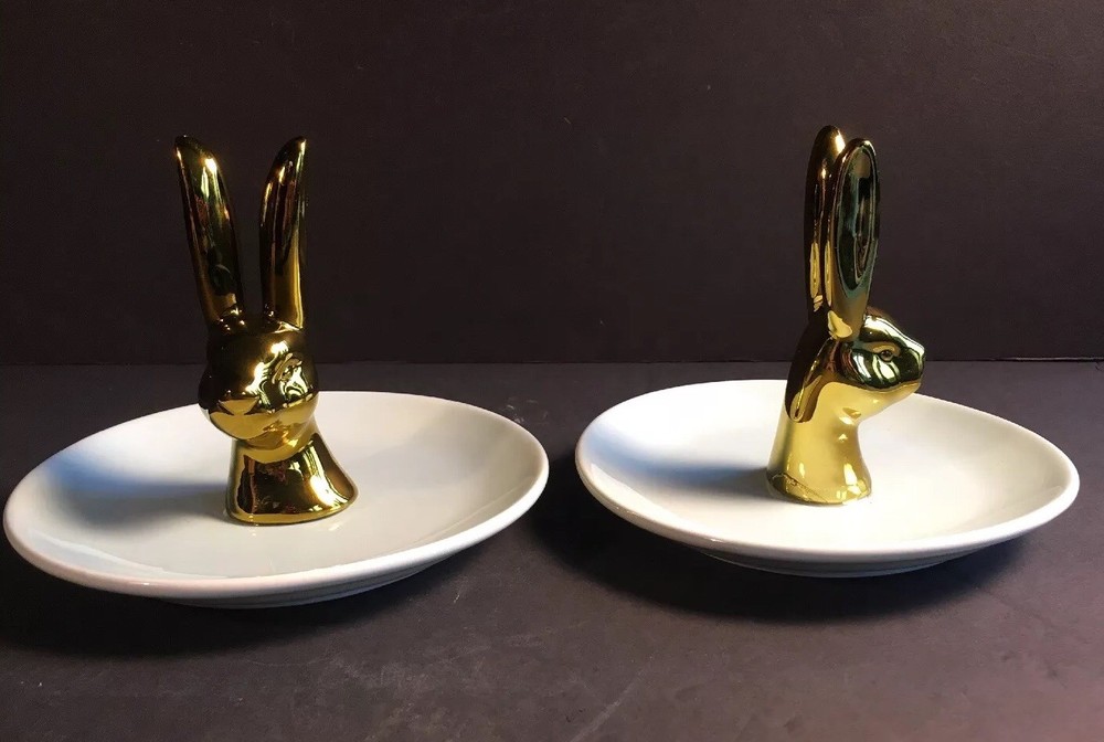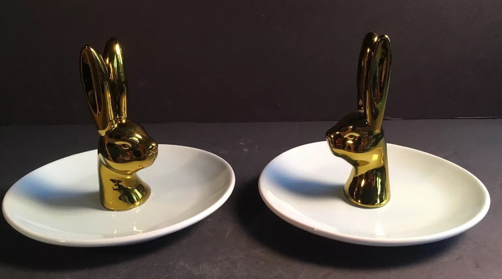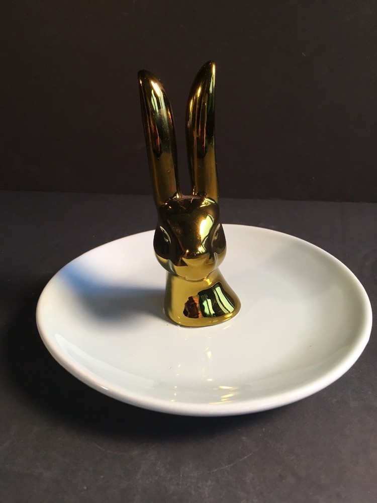 Listing a set of two trinket dishes from Creative Co-op in excellent condition. No chips or cracks. Measurements are 6 inches in diameter for the dish and 4 1/2 inches in height for the bunny and 1 1/2 inches in width. Will sell separately if requested for $7.00 plus shipping.