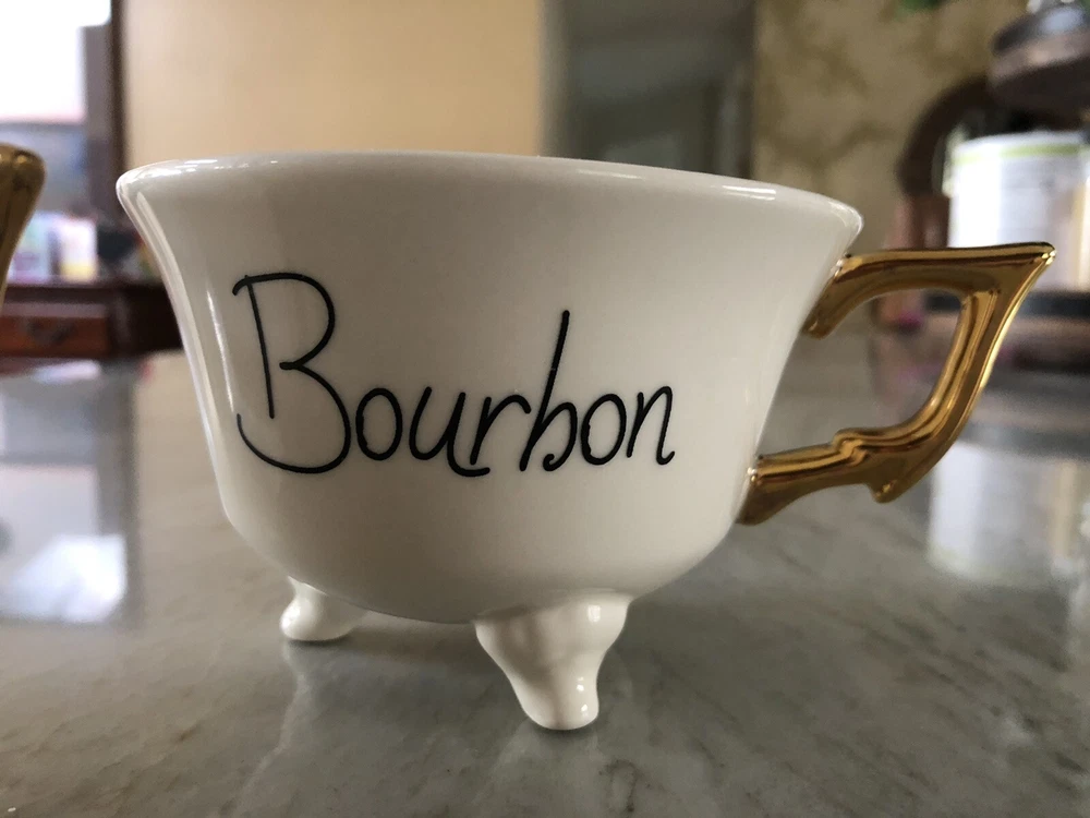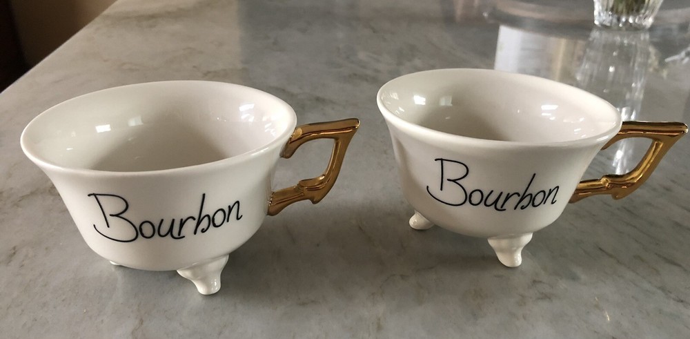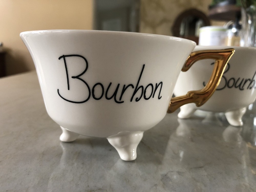 2 Bourbon Cups (look like a footed bathtub) "Bourbon Bath". See pic for mark on bottom on gold handle (only on one of the mugs). I received as a gift but never used. Smoke Free Home...