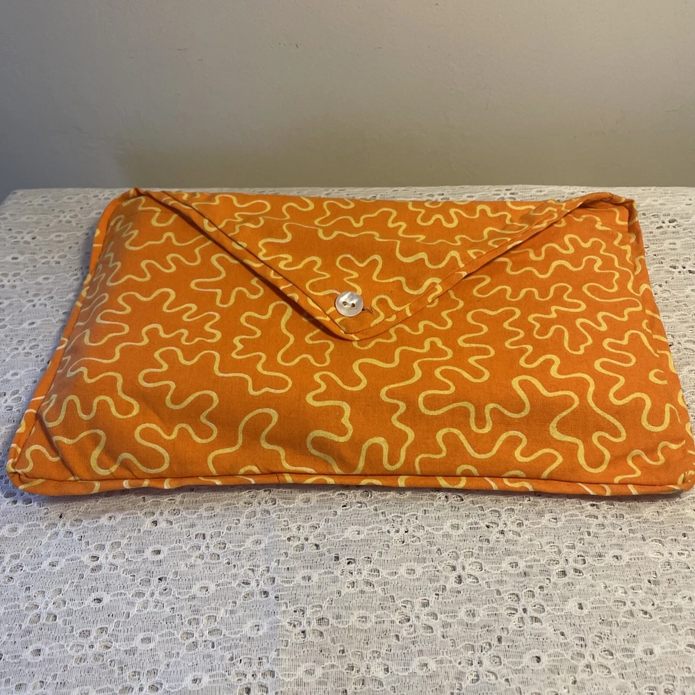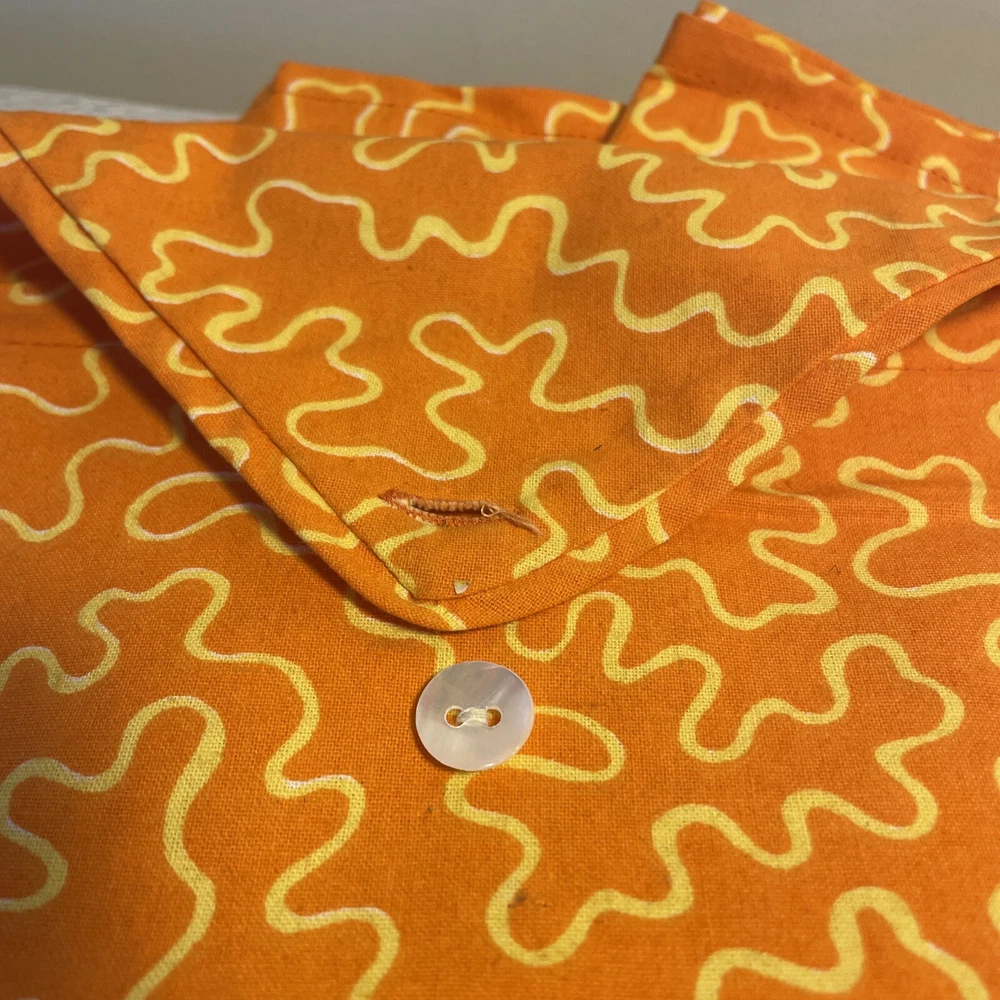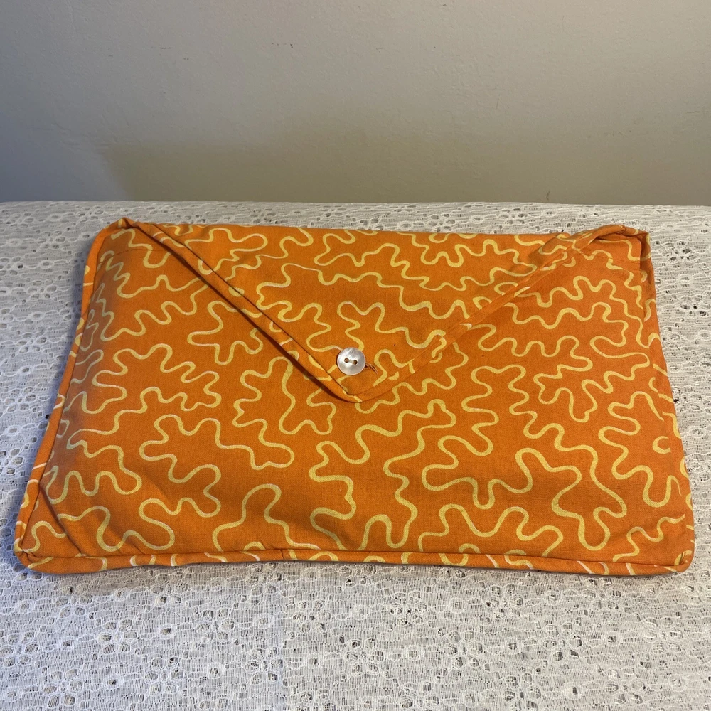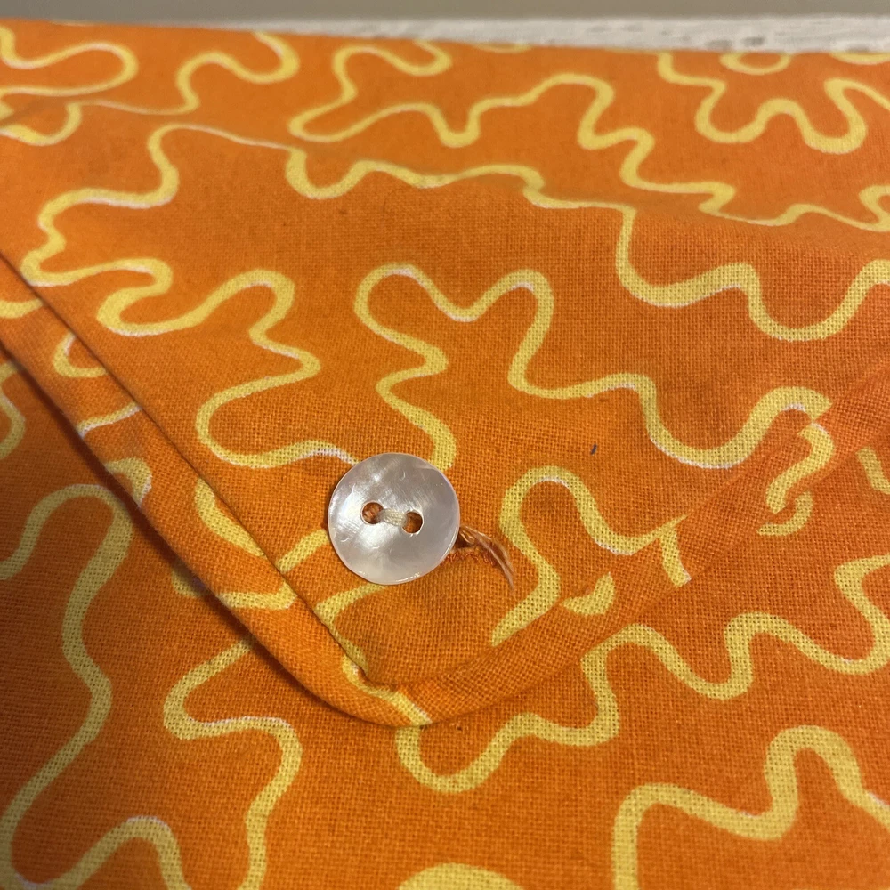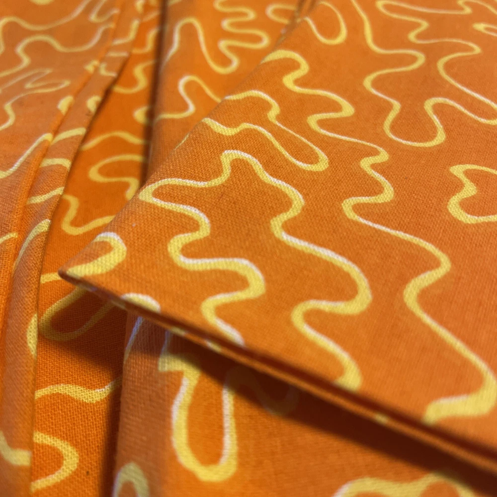 Set of 4 cloth napkins brand new by Two’s Company in an Orange retro 60’s style Mid-Century look. They measure 20”x 20” inches, nice thick cloth and extremely well made. They come with an envelope buttoned case made from the same material for storage. A great unused treasure for sure of high quality. Quick gentle shipping from a loving smoke free home.