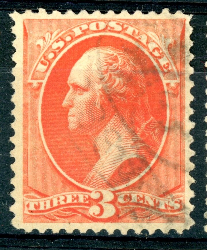 USA 214 3c VERMILLION USED WITH NICE CENTERING LIGHT CANCEL