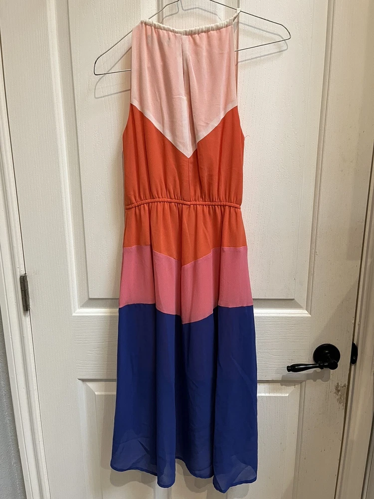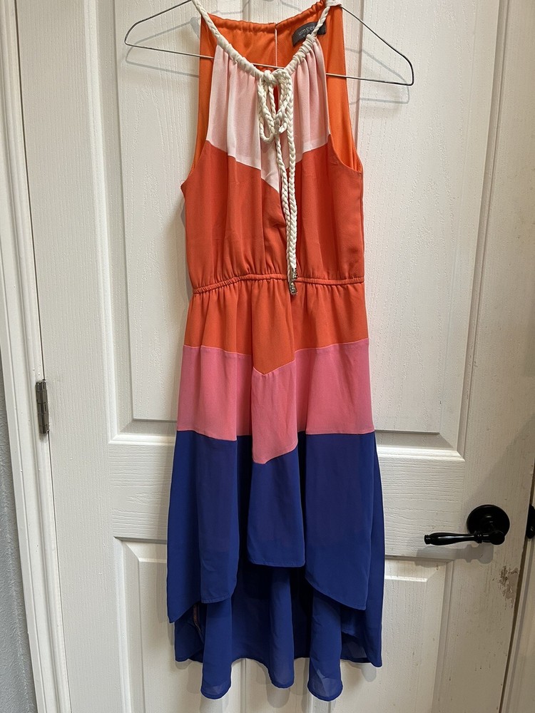 Elevate your wardrobe with this stunning Umgee keyhole colorblock dress in orange, pink, and blue. This knee-length A-line dress is perfect for any occasion, from a casual day out to a formal event. The dress is designed for women in size small and features a colorblock pattern that is sure to turn heads. The dress is made by Umgee, a trusted brand in the fashion industry, and is in excellent condition. With its flattering cut and unique color combination, this dress is a must-have for any fashion-forward woman. Add it to your collection today and make a statement at your next event!