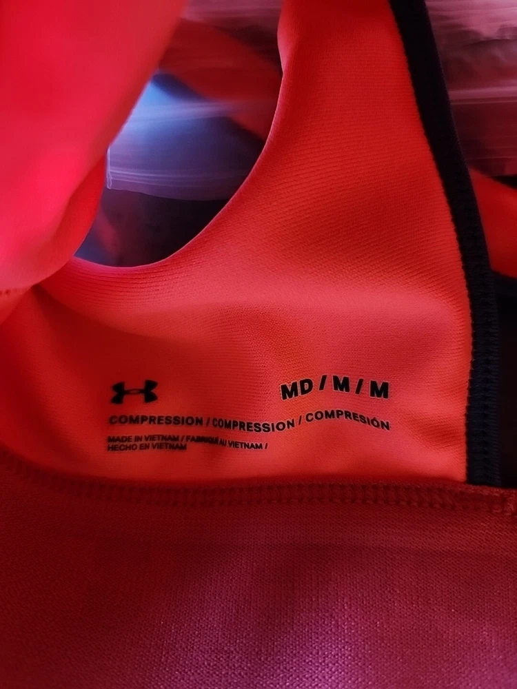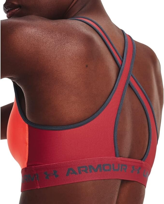 Under Armour Crossback Mid Impact Sports Bra Womens M Orange NEW...