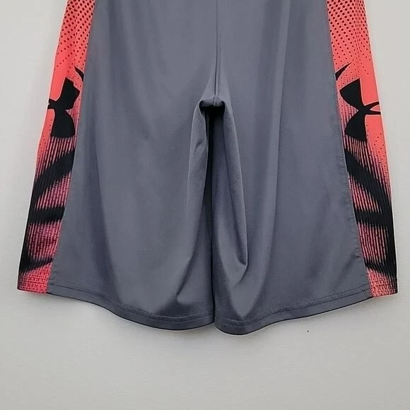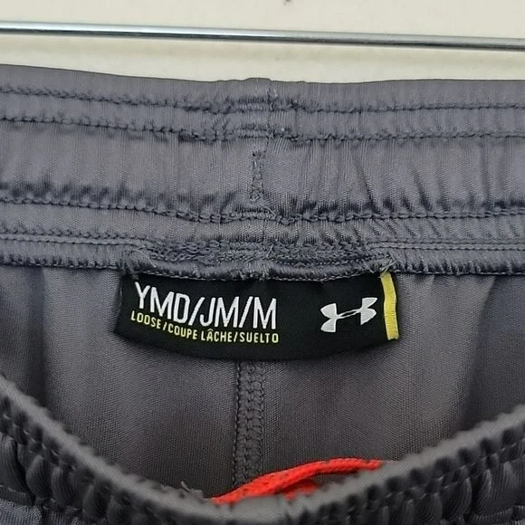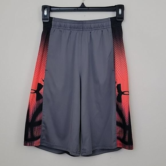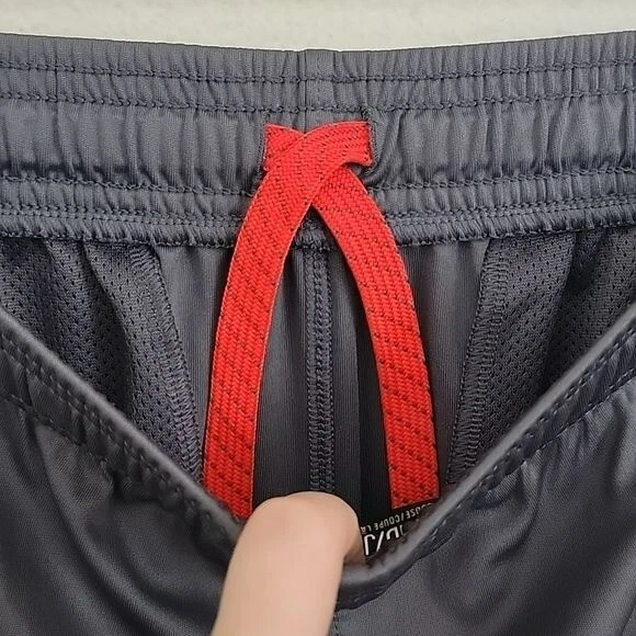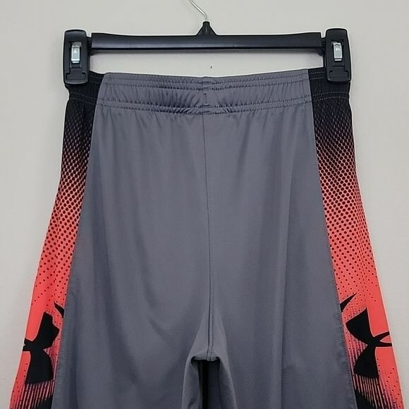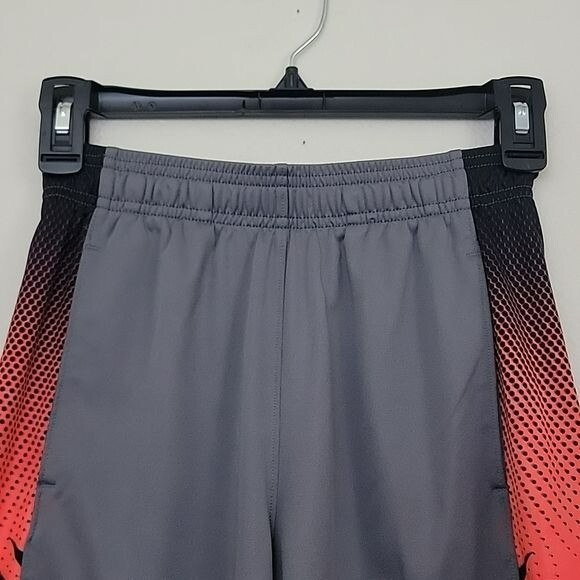 Great condition. Two, front side pockets. Elastic w/ with orange drawstring. Cool orange & black print panels down the sides. Approximate Measurements: Waist (unstretched) 23" Inseam - 9 1/2" Rise - 1...