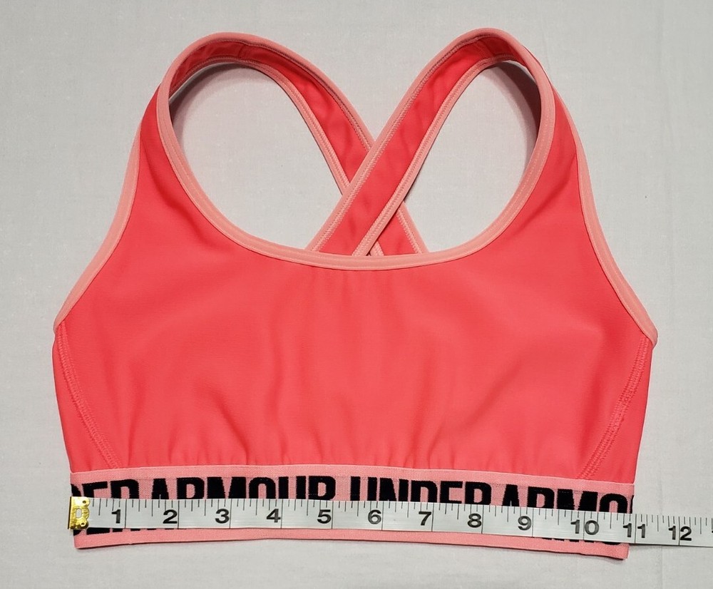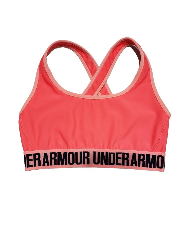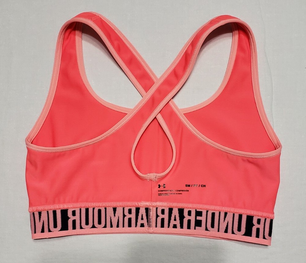 Under Armour Mid Crossback Neon Orange Compression Sports Bra Size Small Note: If you see a dark spot in any of my pictures, i have a poor lighting setup currently and they are shadows. I have new lighting on the way so that should be fixed for future listings. Any spots stains or defects i point out in the pictures using a capped red pen. If you don't see a red pen any any pictures then i didn't notice any issues with the item.