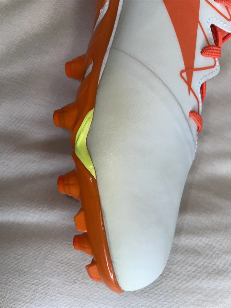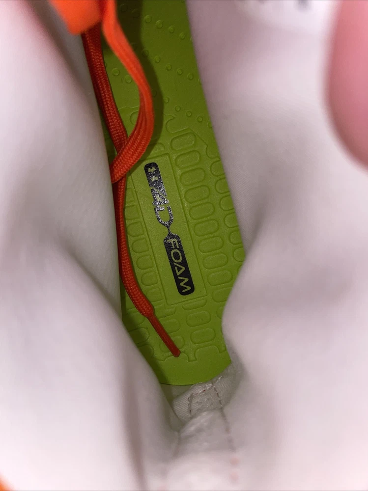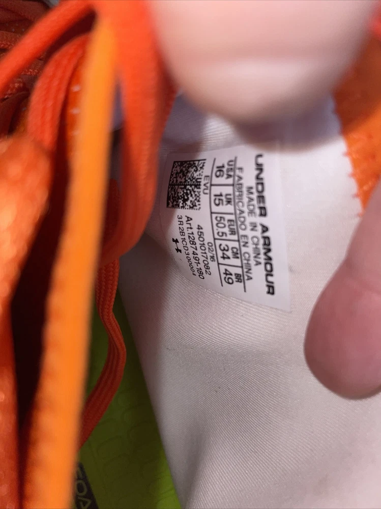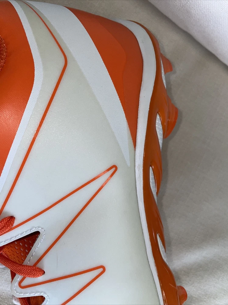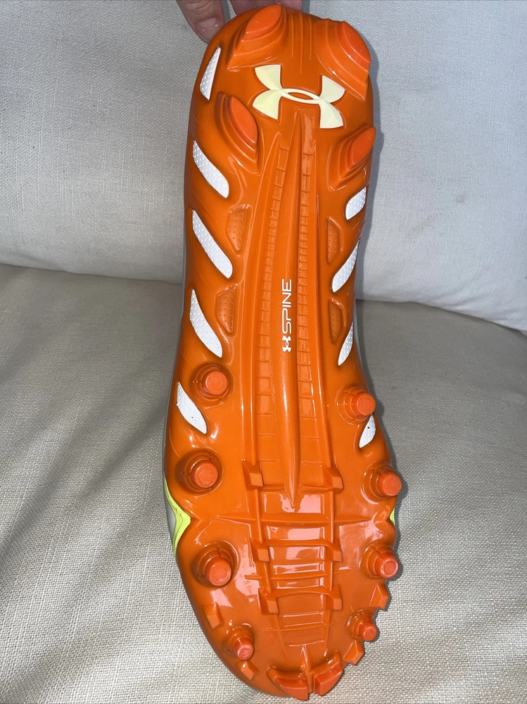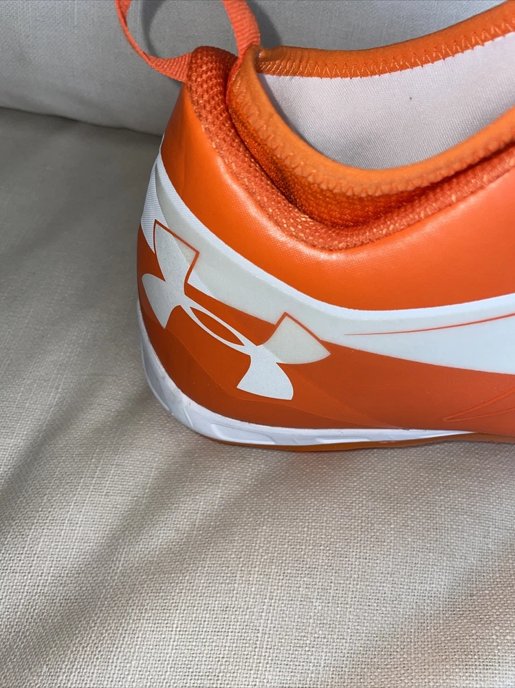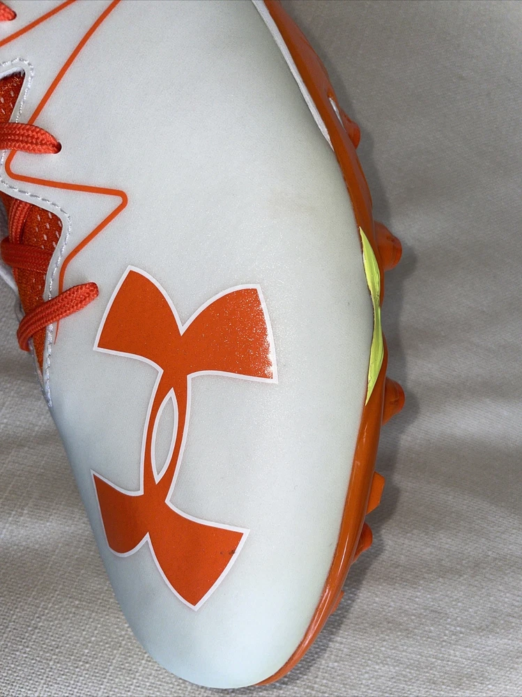 Under Armour Nitro Football Cleats Mid Orange White Men's SZ 16 | 1287491-180 P6. New without box. Mens size 16 USA Made in China 4D foam insoles Orange with White The only minor discrepancy is some yellowing discoloration near the sole where the white meets the yellow and orange. Might be the design but I’m disclosing! Smoke free home!!! Smoke free pet free storage Please see all pictures All sales final. No returns Ships usps priority Mail UPS GROUND or FedEx home depending on buyer location and at sellers discretion. P6