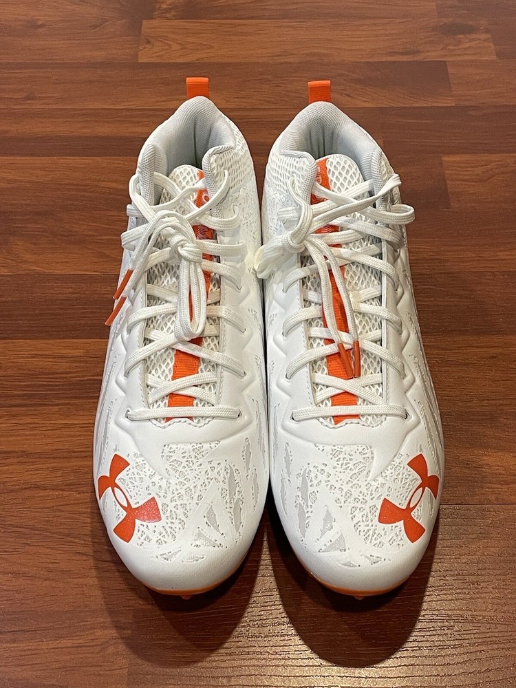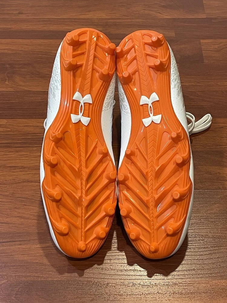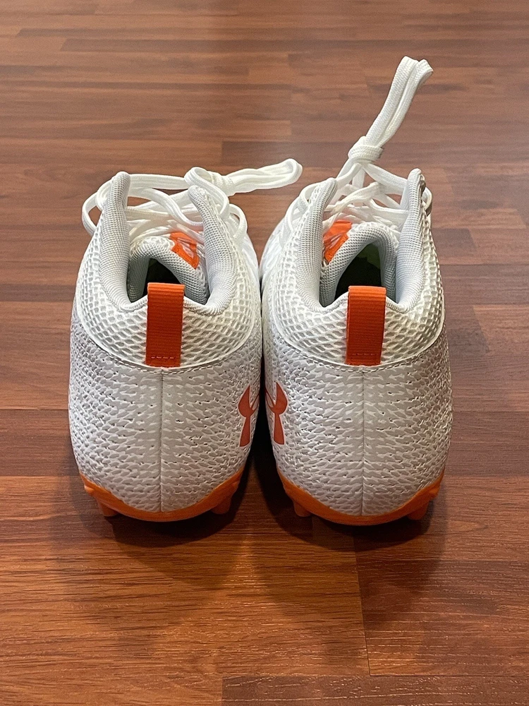 Under Armour Spotlight 4D Mid ‘White Orange’ (size us mens 13). Condition is new without box. Come as seen in pictures. Any questions send a message. All items are shipped within 24hrs of purchase
