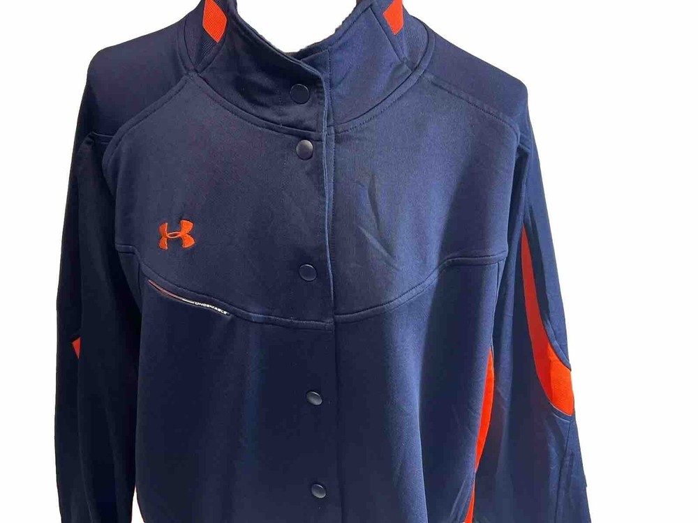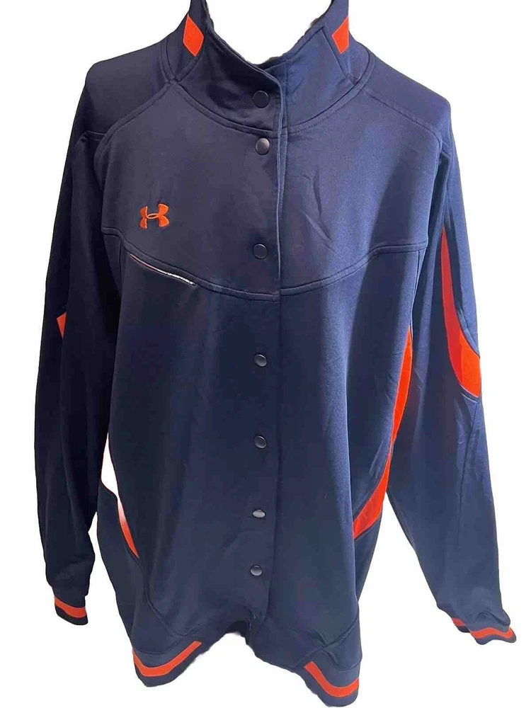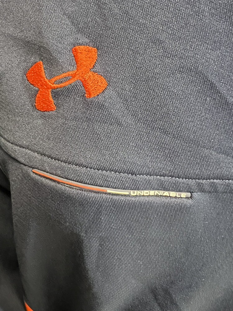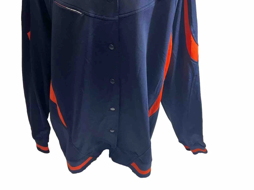 This Under Armour Undeniable track jacket is a must-have for any active man's wardrobe. The jacket features a button front closure and is made from softshell polyester fabric, ensuring both comfort and durability during workouts. The mid-length jacket comes in a vibrant blue and orange color scheme, with accents including the Under Armour logo. The jacket is perfect for a variety of physical activities, including gym and training, walking, cross training, CrossFit, and running and jogging. It's an ideal fit for men who appreciate quality and style, and the brand's product line is well-known for its high-performance and activity-driven features.