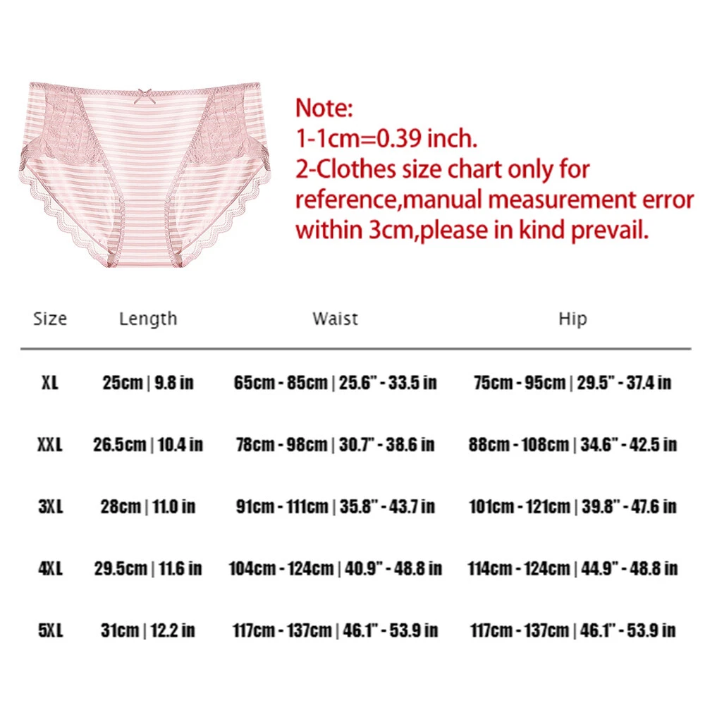 Seamless Underpants Butt-Lifting Underwear Mid Waist Lace Bow Decor Briefs Features : - Put your body in a totally relaxed status, high elasticity. - Ultra smooth feeling, soft and comfortable fabric - Focuses on a perfect undewear for you, not only inimitably sexy. - Make you super sexy and seductive. - Serve as a nightwear and also a stimulative sex kit for sexual life of couples. Seamless, Hip Lift, Slimming, Breathable, Comfortable Waist Type: Middle Waist Material:Nylon,Lace,Cotton,Spandex Size: XL,XXL,3XL,4XL,5XL Color:As picture shown Package Content:1 x Panties Notice: Please refer to our size chart and choose the right size before buying. (If your size is between two sizes, please choose the larger size.) As you know, Different computers display different colors, And the actual product colors may be slightly different from the pictures. The size is manually measured, Please allow a difference of 1-3 cm, Thank you (All in cm, Note that 1 cm = 0.39 inches) Note: 1. Due to the light and screen difference, the item's color may be slightly different from the pictures. 2.Please allow 2-3mm differences due to manual measurement.