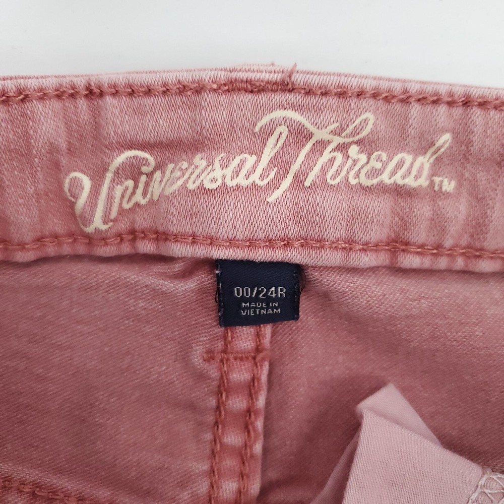 <![CDATA[<div>Universal Thread Womens Orange 5 Pocket design belt loops skinny leg raw hemline stretchy split ankle Size 00\24 Regular 90% Cotton 8% Recycled Polyester 2% Spandex Measurements are approximate taken Flat waist: 14 rise 8 inseam: 29.5 tags: orange, hipster, vacation, summer, streetwear