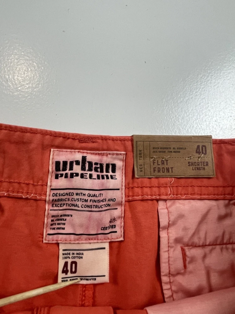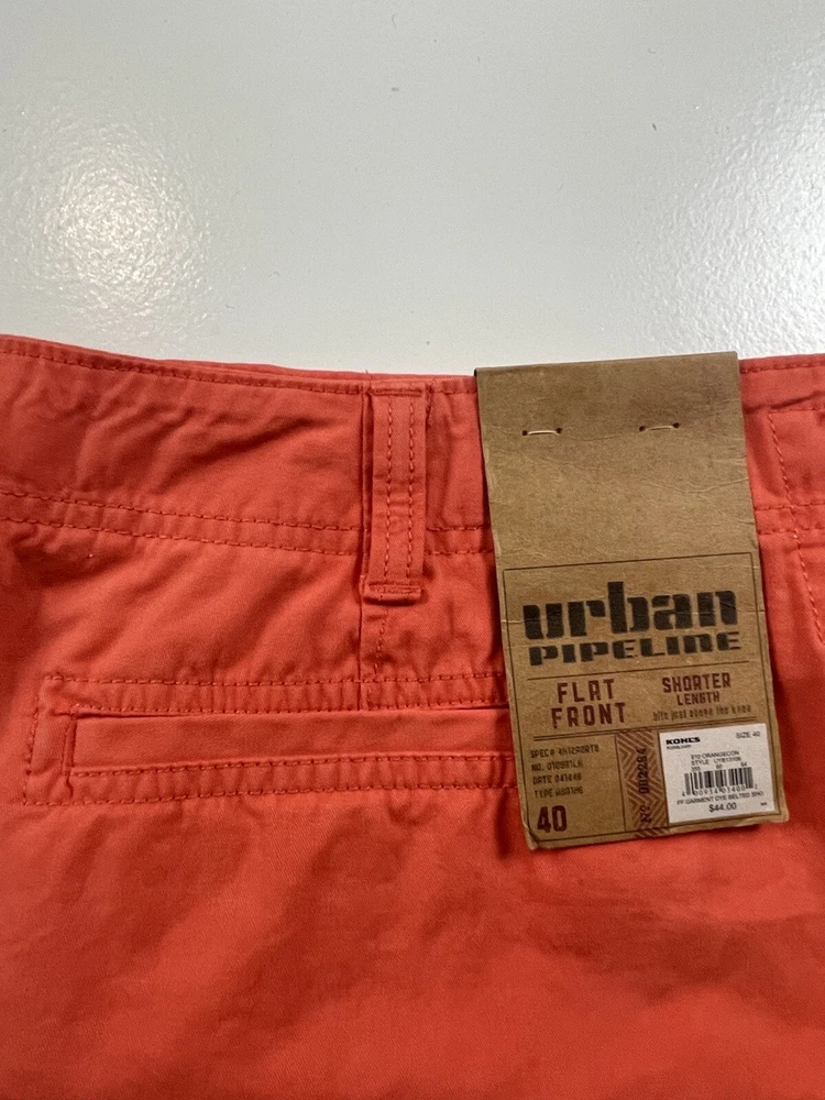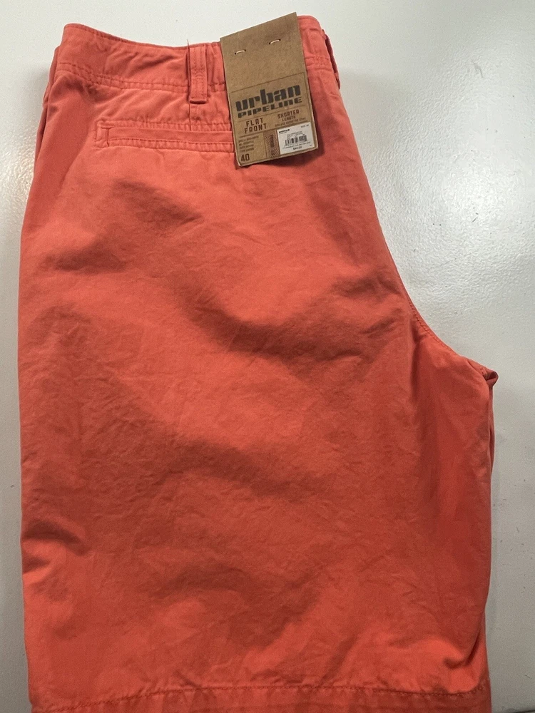 Upgrade your summer wardrobe with these stylish orange shorts from Urban Pipeline. Crafted with a cotton blend fabric, these chino style shorts feature a flat front and a mid-rise waistline. The shorts come in size 40 with a waist size of 40 inches and have a zip closure to ensure a secure fit. Perfect for casual outdoor occasions, these shorts are easy to care for and can be machine washed. They come in a solid pattern and a denim fabric type, making them versatile for all seasons including summer, fall, and spring. Don't miss out on the chance to add these trendy and comfortable shorts to your collection today!