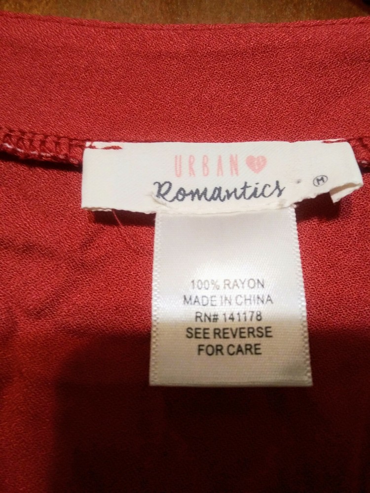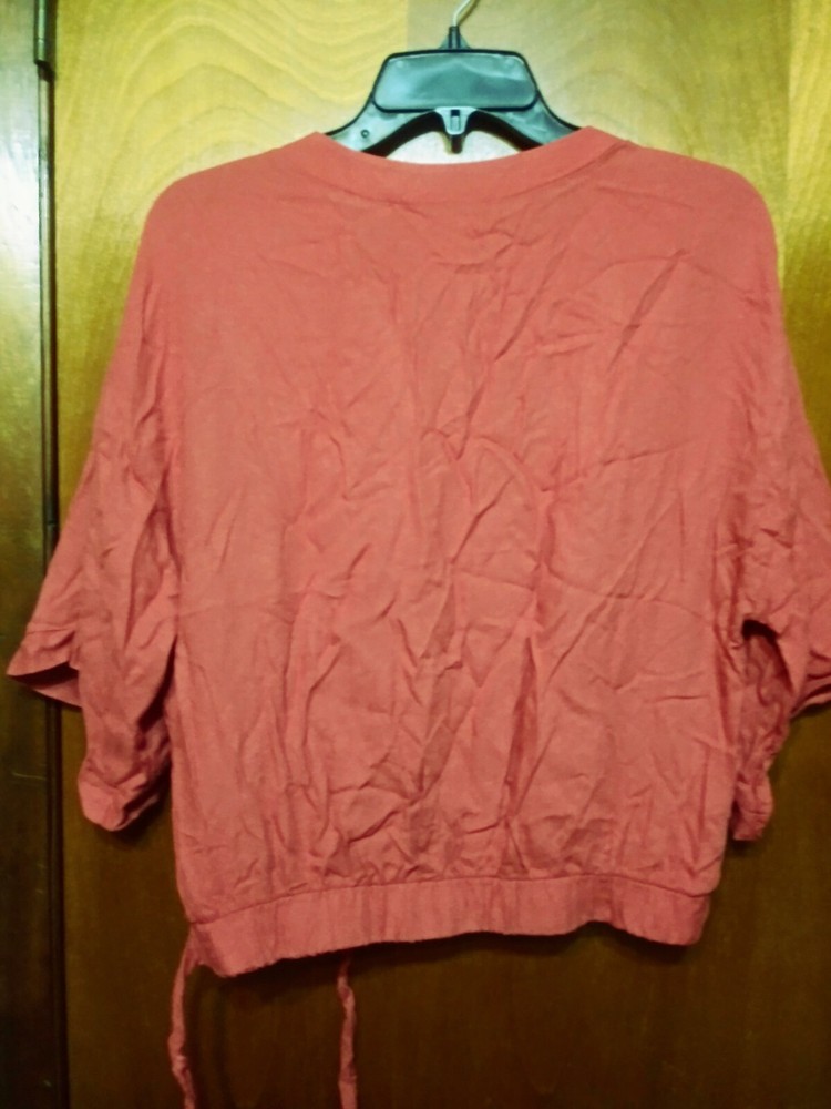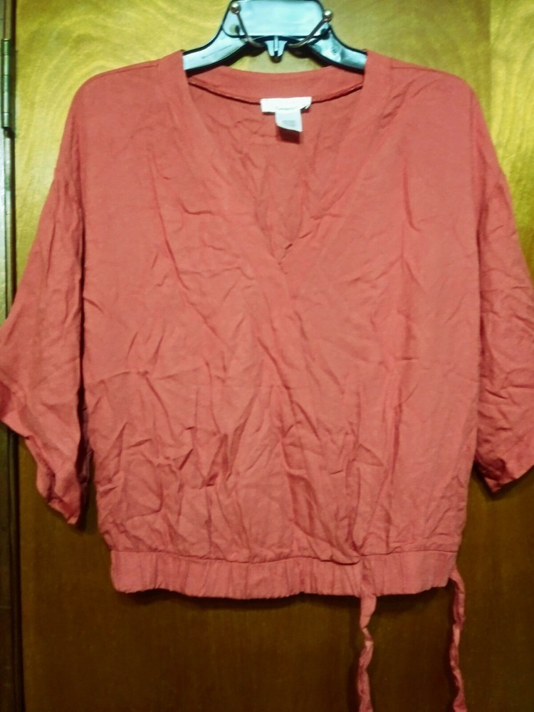 Urban Romantics Medium blouse burnt orange Mid sleeves elastic waist tie on side, good condition, v-neck under arm to under arm 21 inches top to bottom 21 inches. Condition is Pre-owned. Shipped with ...
