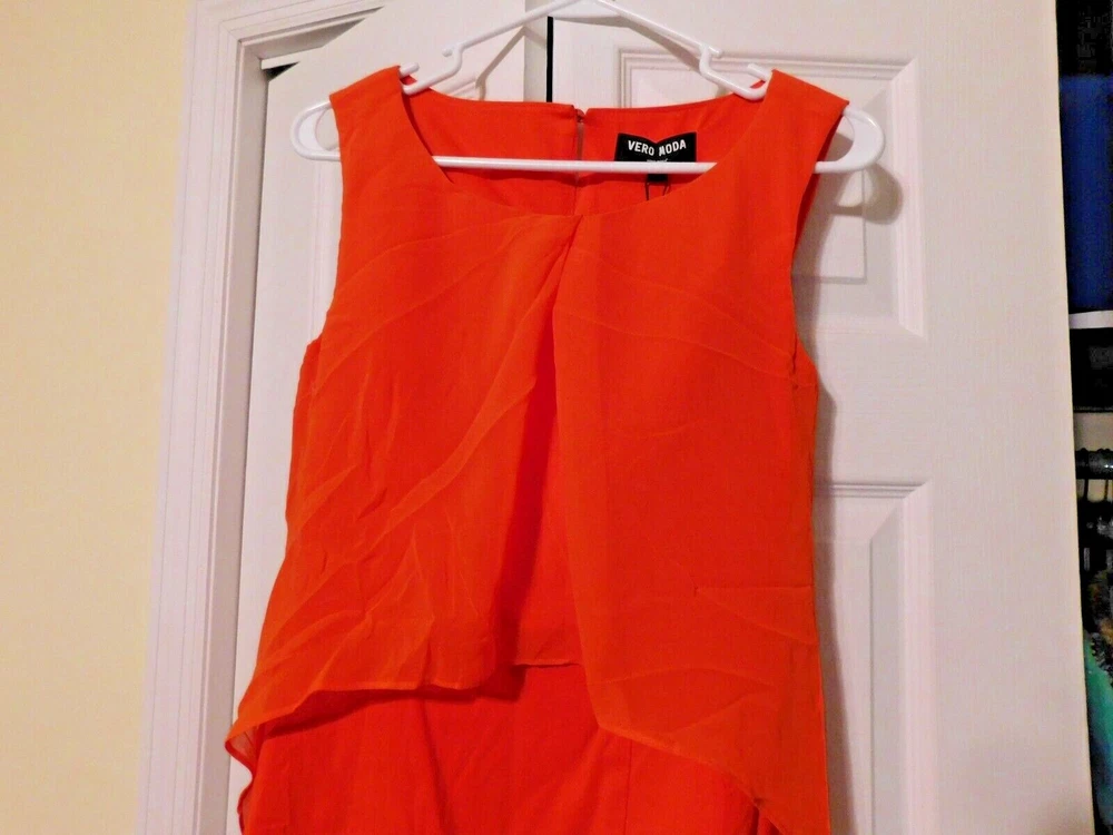 VERO MODA NWT Gorgeous Orange Dress Dress has Chinese Tags Size M 16-1/4" from pit to pit and 33" long Size L 17-1/2" from pit to pit and 34" long Darling! Color is gorgeous 15