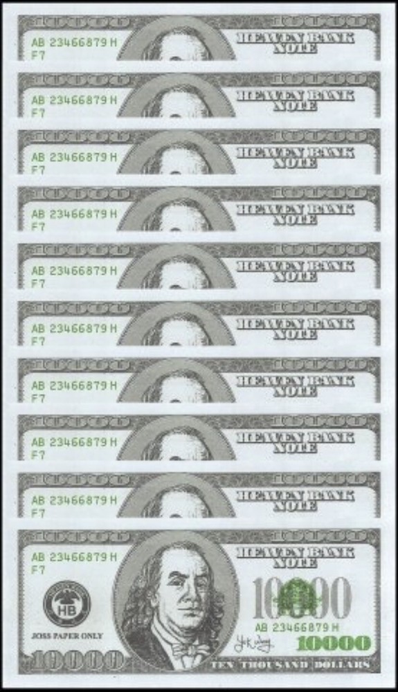 These notes are also called Hell Notes. In China, the burning of ghost money is used as ‘hell money’for the dead.‘Hell money’can be divided into: Hummer money (using mallet and iron money mold, beating the shape of money on the paper).Cutting money (cutting the paper into squares and sticking it with gold and silver foil, or folding it into ingots like gold and silver), and Printing money imitating modern paper money and silver dollar, printing "hell bank" and various numerical amounts. Like paper money circulating in the world. All hell notes have the same serial numbers.