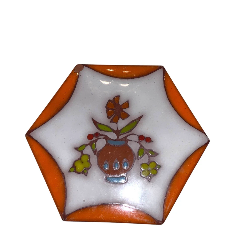 VINTAGE FLORAL TRIVET TILE ITALY BY EDILGRES ORANGE Terracotta Mid Century Boho. Condition is Used. Shipped with USPS Ground Advantage.