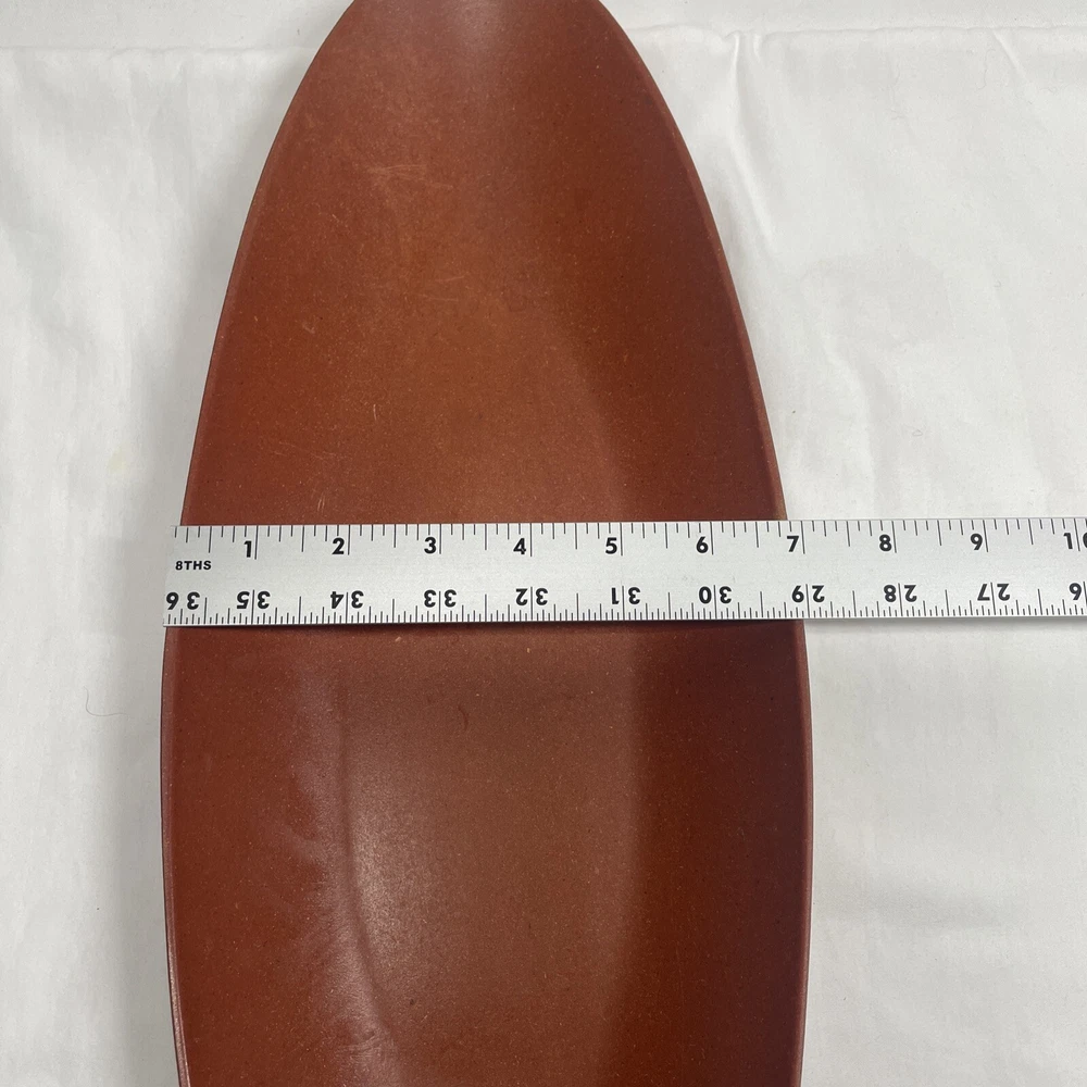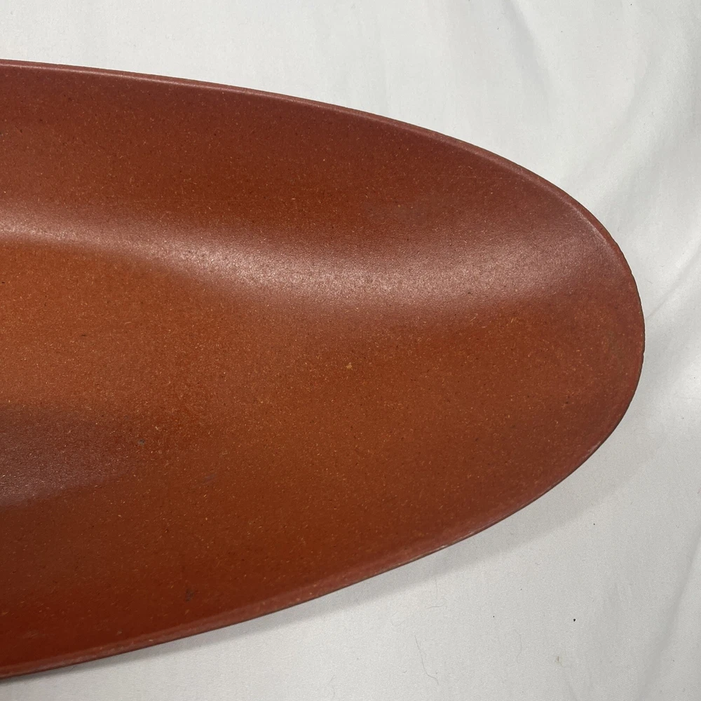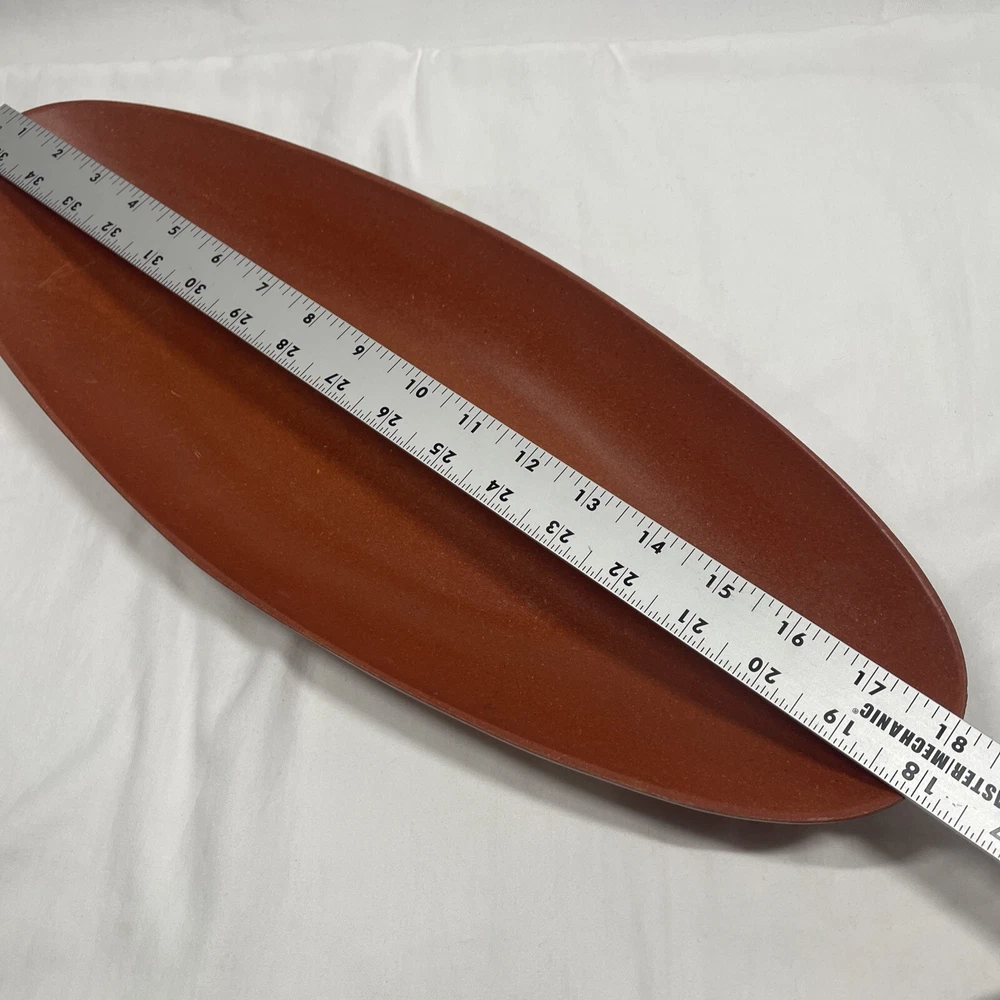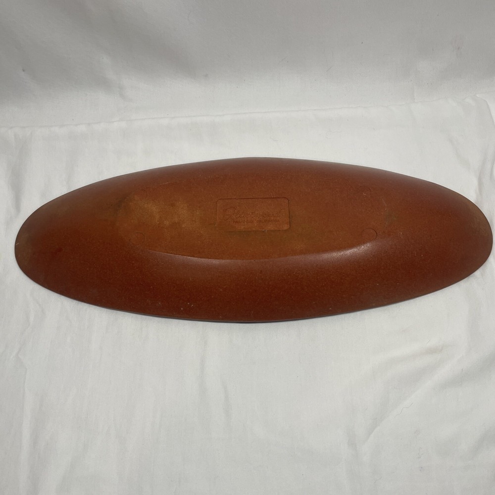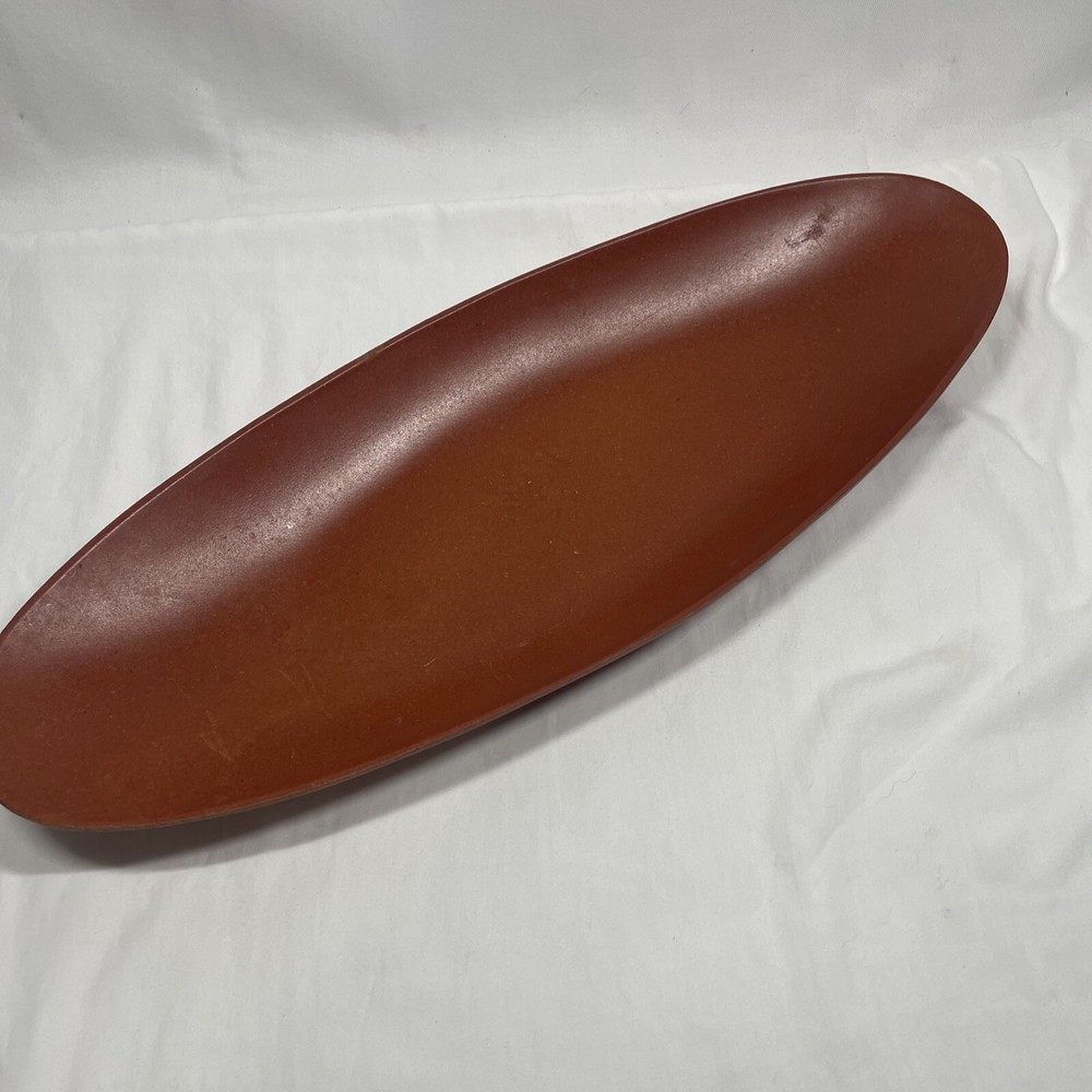 This vintage tray is a cool piece of mid-century design, crafted in the USA by Flintwood. The burnt orange color is eye-catching and adds a pop of retro style to any kitchen or dining room. Measuring 18 inches by 7 inches, it's the perfect size for serving snacks or drinks at your next gathering. This tray is made of durable melamine and is in excellent condition, ready to be used and enjoyed for years to come. *some minor scratches as shown in photos