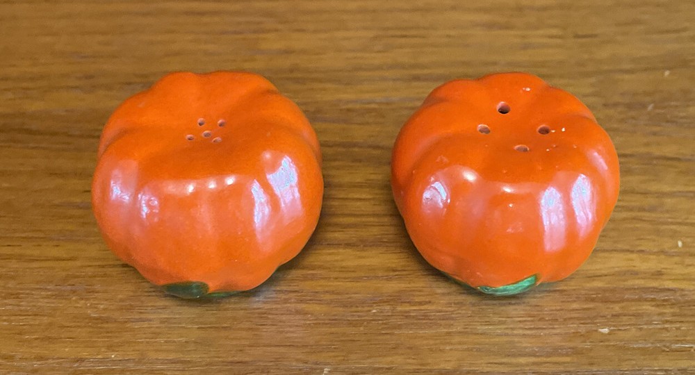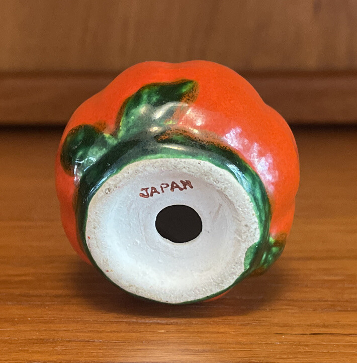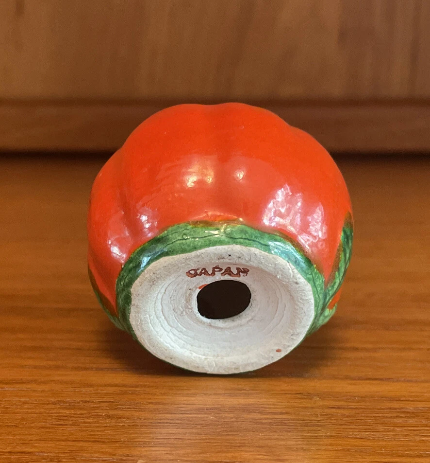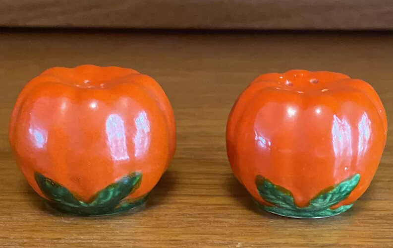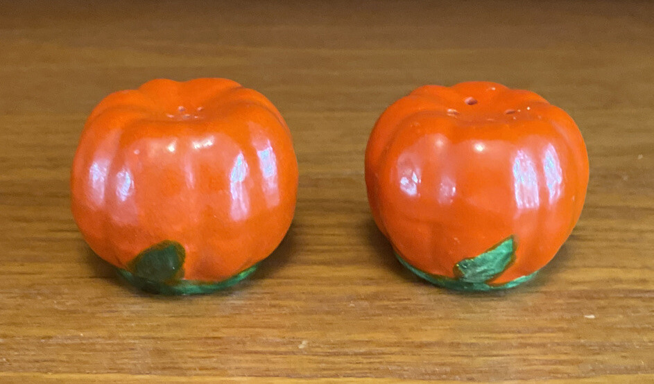 VINTAGE ORANGE JAPAN PUMPKIN SALT & PEPPER SHAKERS FALL HARVEST. This is a really cool set of Japan made vintage orange pumpkin salt and pepper shakers. Stamped Japan Measures approximately 1 1/2" tall and 2" wide These are awesome vintage Japan collectible fall harvest shakers! No corks. In very good used condition. See photos as they are part of the description Shipped via USPS Priority Mail. Thanks for looking!