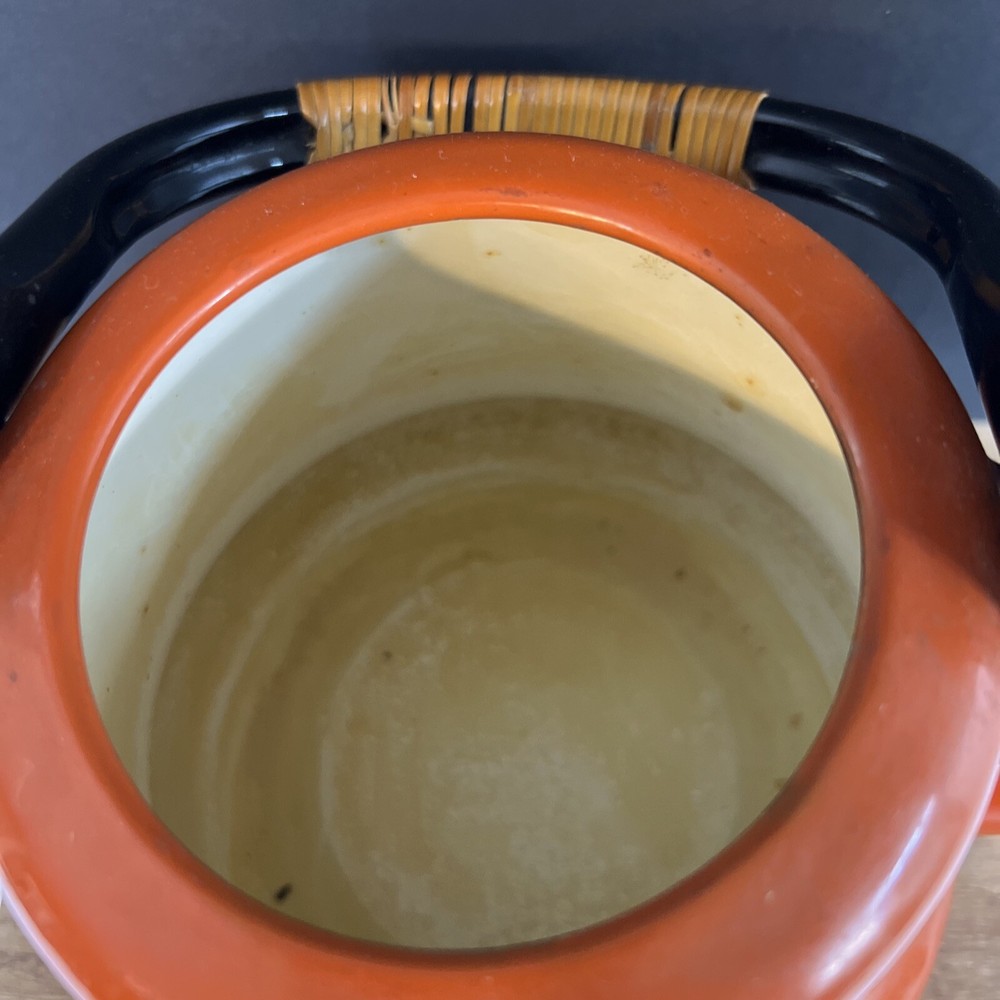 VINTAGE MID CENTURY OTTO BRIGHT ORANGE TEA KETTLE POT WITH HANDLE JAPAN. This does have wear inside the kettle as shown in the pictures....