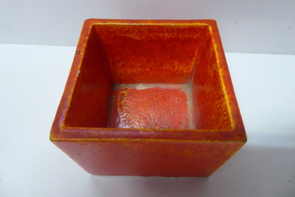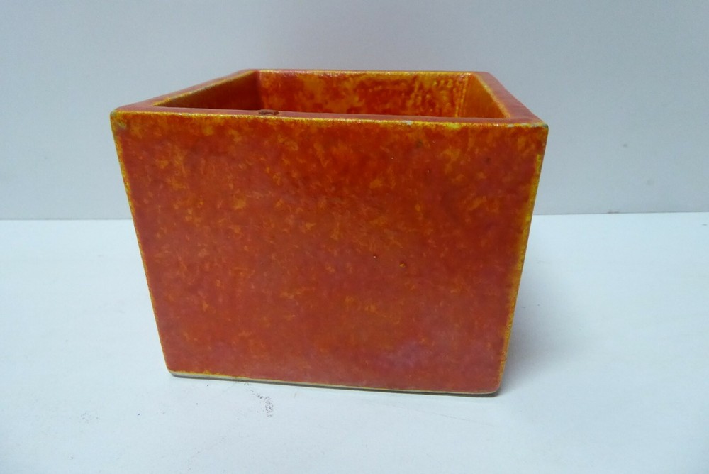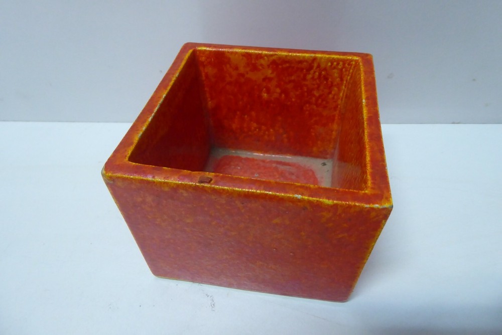 VINTAGE ORANGE GLAZE POTTERY SQUARE / CUBE BOWL MID CENTURY STUDIO IN GOOD CONDITION 10.5 CM x 10.5 CM x 8 CM SEE PHOTOS FOR BEST GUIDE TO CONDITION AND SIZE I AM LISTING SOME OTHER ESTATE PIECES I can combine for postage. CHECK MY OTHER LISTINGS FOR MORE