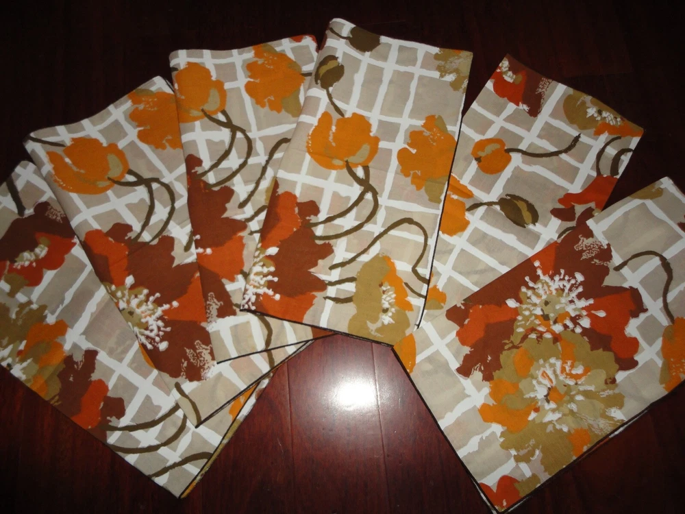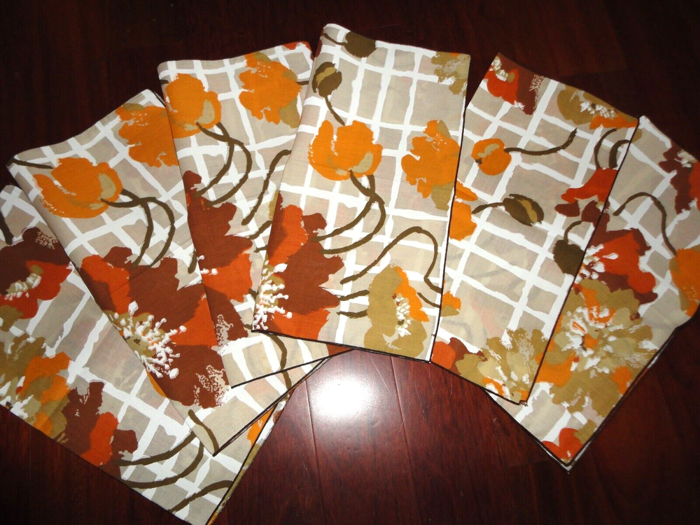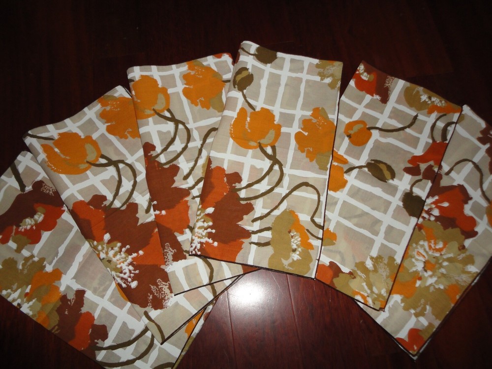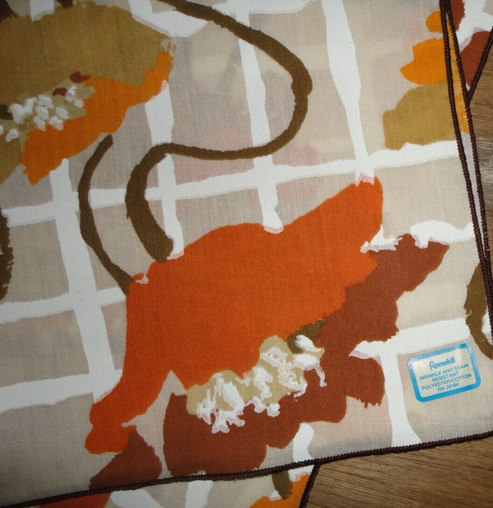 VINTAGE ROMATCH BROWN ORANGE RUST WARM FLORAL NEW.. FLORAL 50/50 % COTTON POLY 17 X 16" INCLUDES (6) NAPKINS FROM A SMOKE FREE-PET FREE STORE / BUSINESS