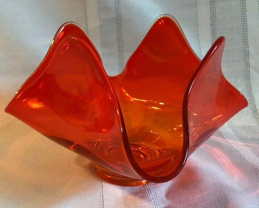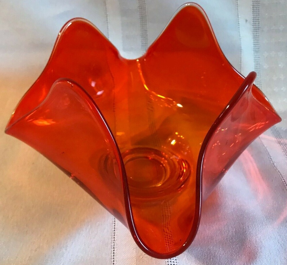 Like New ~ Gently Used ~ VINTAGE ~ MID CENTURY ~ VIKING GLASS ~ "PERSIMMON" ORANGE ~ HANDKERCHIEF BOWL ~ Approximately 4 3/4" x 4 1/4" tall ~ See Condition Description & Photos ~ CHECK OUT MY OTHER VIKING GLASS ITEMS ~ FROM A SMOKE FREE HOME! I strive to give an accurate description of my items. Pictures are an accurate depiction of the item. Please REVIEW the description and pictures carefully. Please ask any questions before you purchase the item. CHECK OUT MY STORE ~ {526} 1.13.<**4.<**2.5.