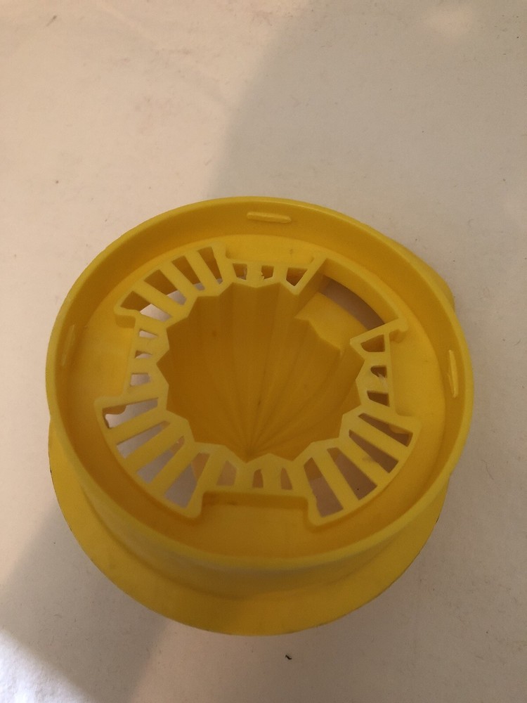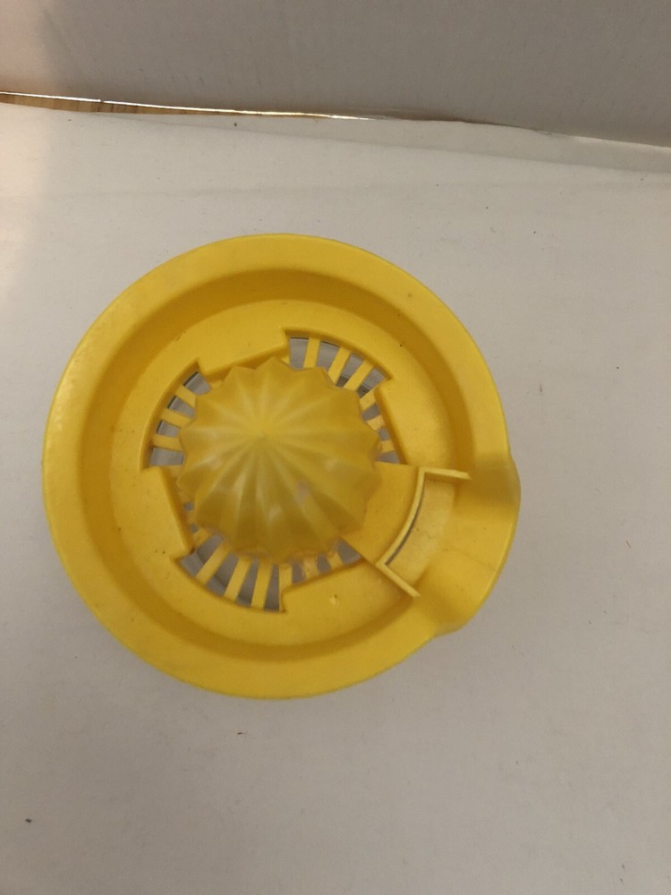 This vintage Gemco hand press juicer is a must-have for any kitchen. With its bright yellow color, it adds a pop of retro charm to your countertop. Perfect for juicing lemons, limes, and oranges, it comes with a citrus press component for easy use. Made in the United States, this juicer is a collector's item. It's a great addition to any small appliance collection and is sure to impress your guests. The juicer is in good working order and ready to be used for all your citrus juicing needs.