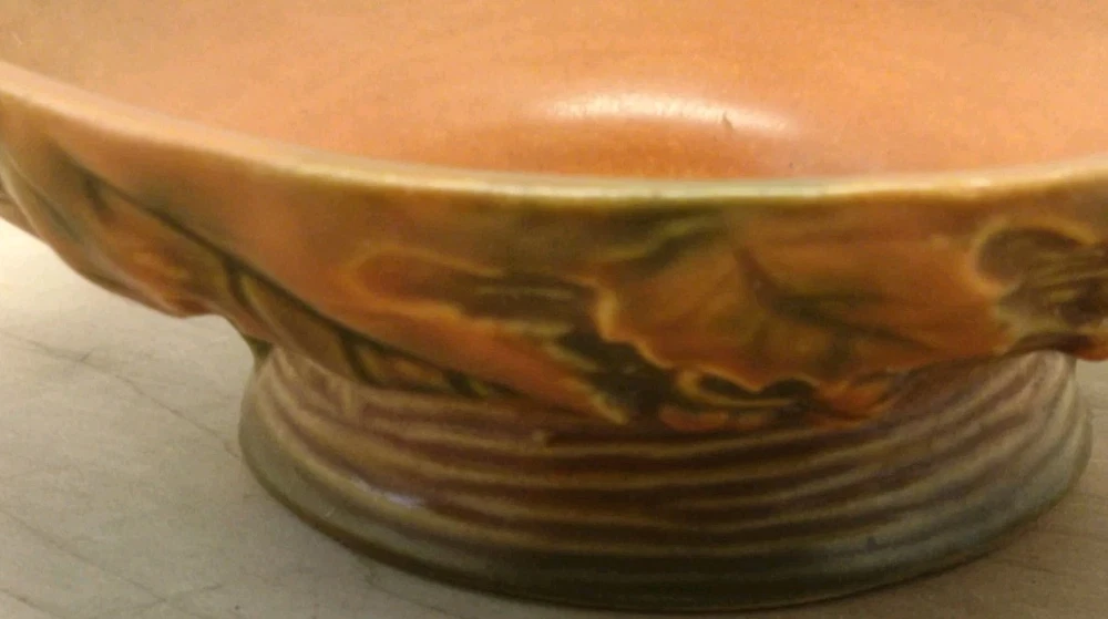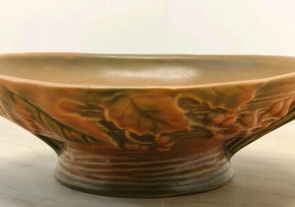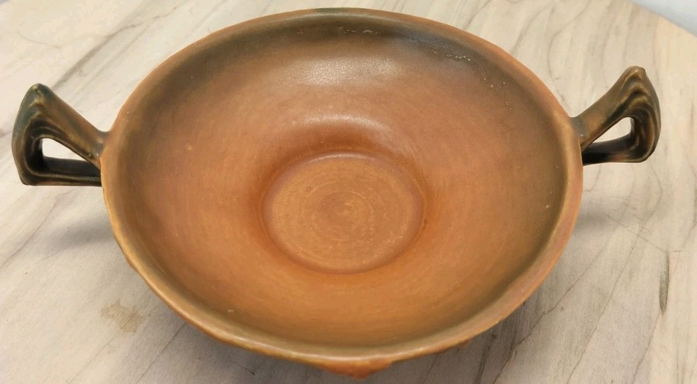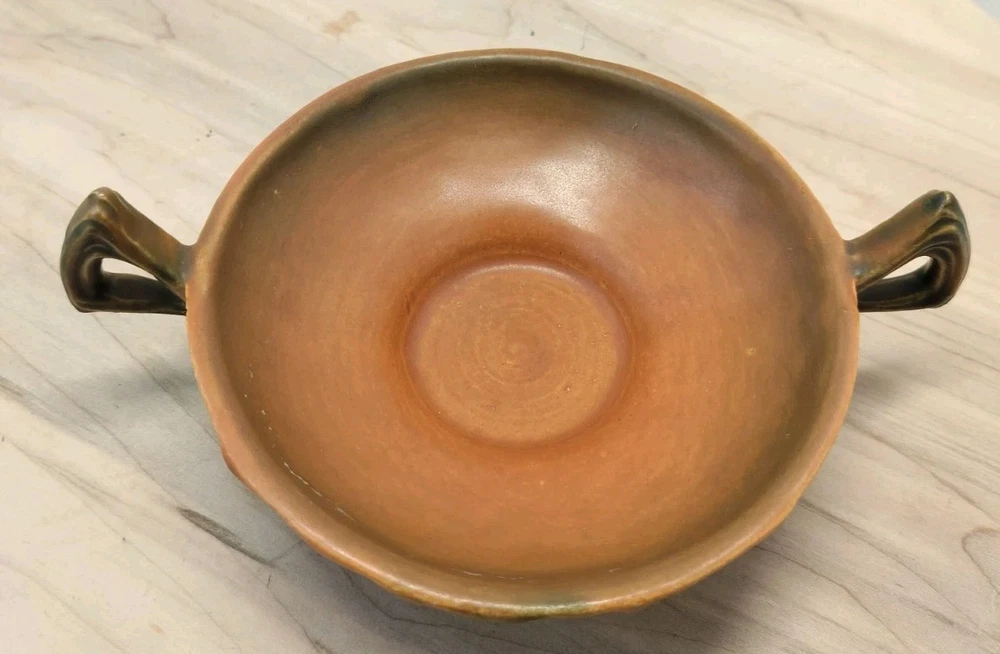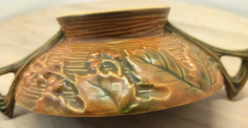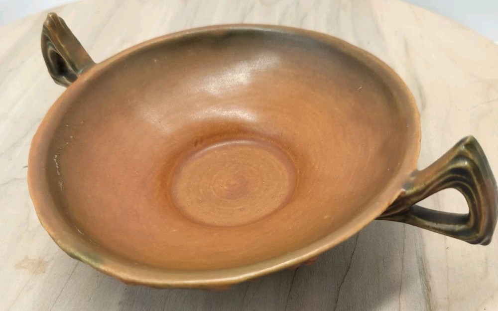 VINTAGE 1941 BUSHBERRY RUSSET HANDLED BOWL ROSEVILLE POTTERY U.S.A. TWIG LOOKING HANDLES BROWNS GREEN & ORANGE HUES 6.25" DIAMETER X 2" TALL NO CHIPS CRACKS OR REPAIRS PLEASE SEE PHOTOS FOR MORE DETAILS. PLEASE SEE MY OTHER LISTINGS AS I LIST MORE VINTAGE ITEMS DAILY . HAVE A WONDERFUL DAY. #5790 6/25 bxshf