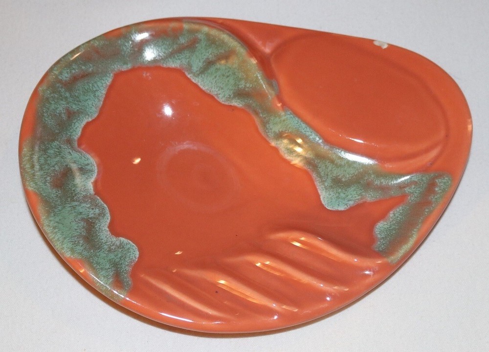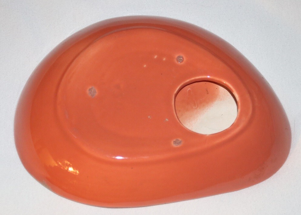 VTG Art Pottery Retro Orange Cigarette Cigar Ashtray MCM Mid-Century Flow. In good clean condition with a small chip on top. No cracks. Measures 10 x 7.5 inches.