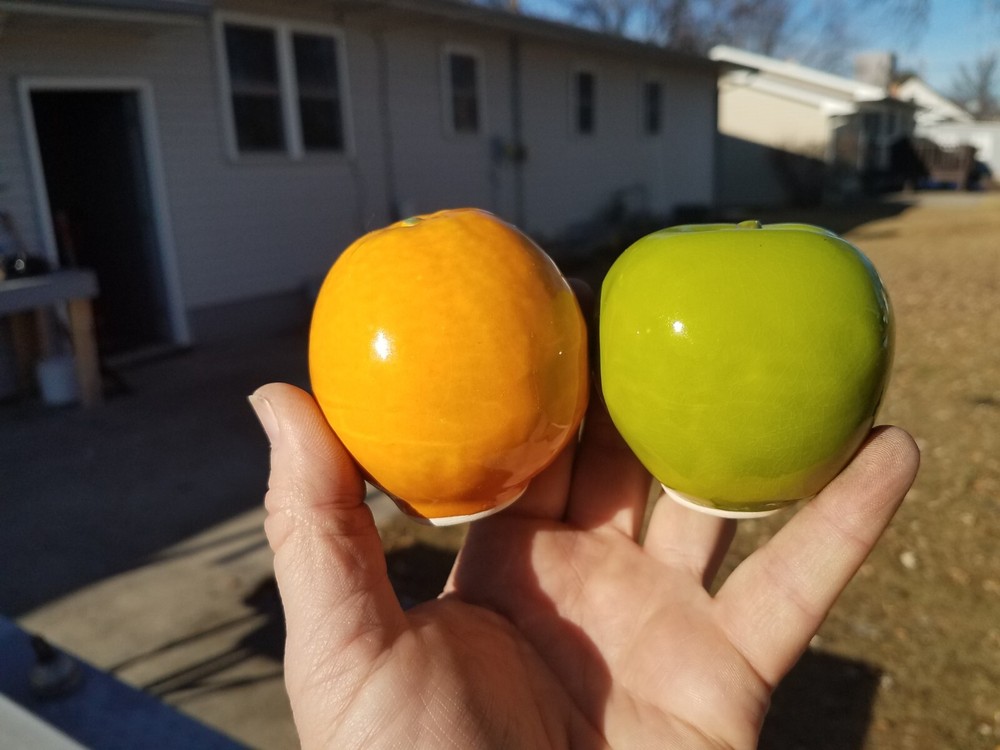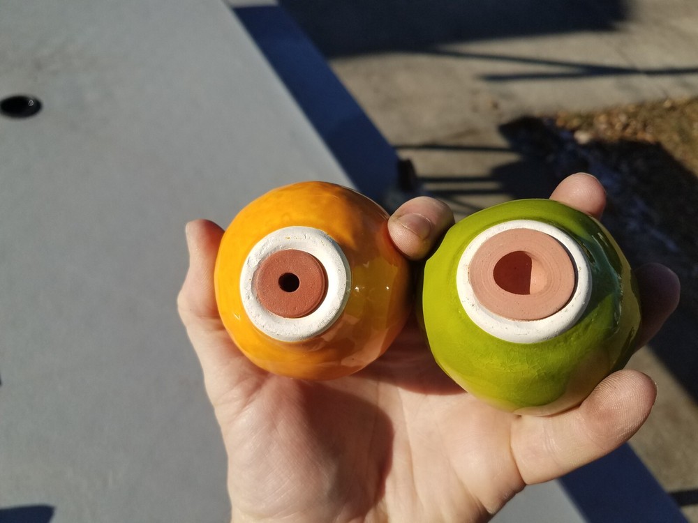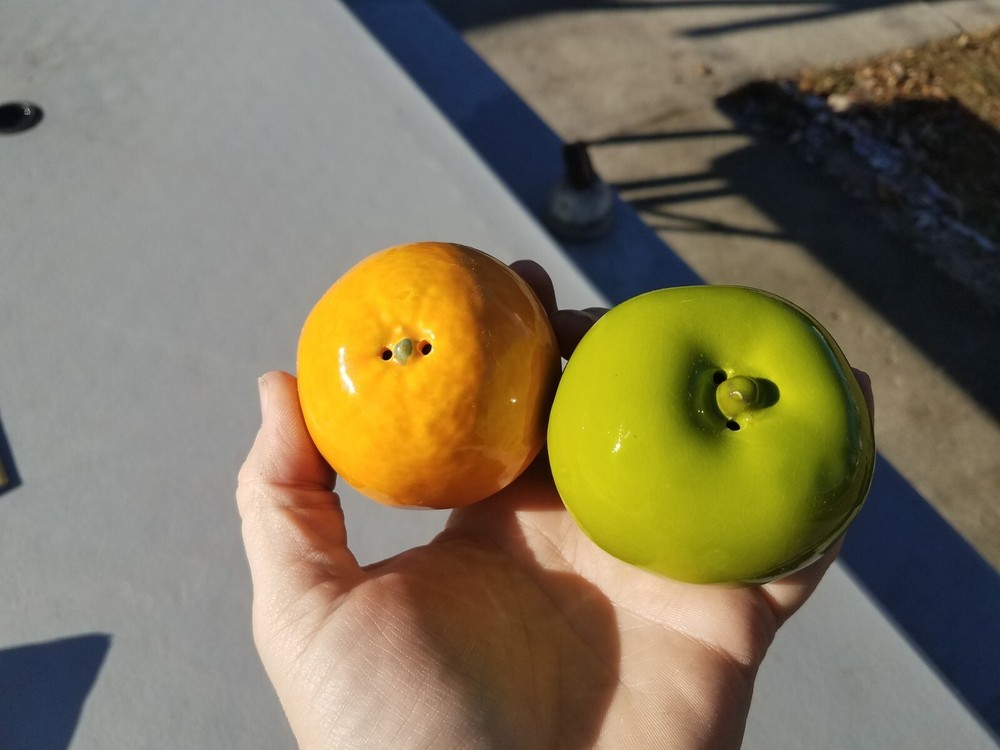 2 NEAT LOOKING CERAMIC SHAKERS IN GREAT CONDITON. ESTATE AUCTION FINDS. THANKS FOR LOOKING AT MY LISTING & MANY MORE TREASURES LISTED!