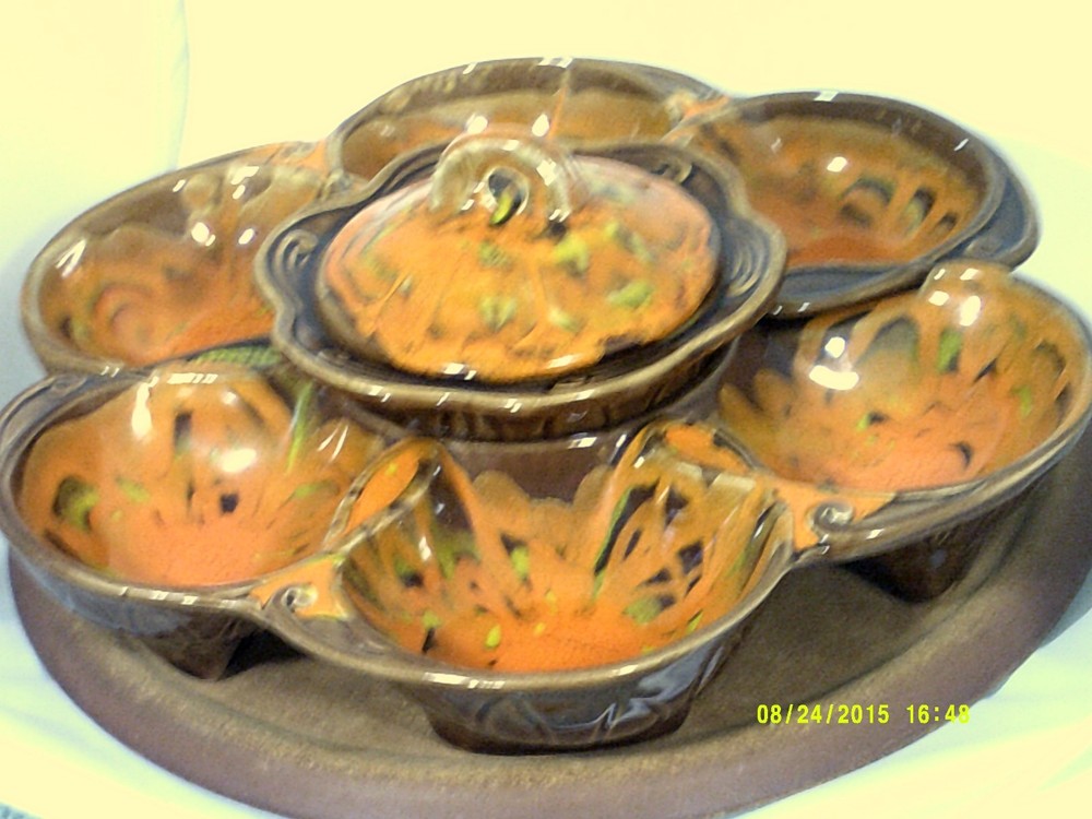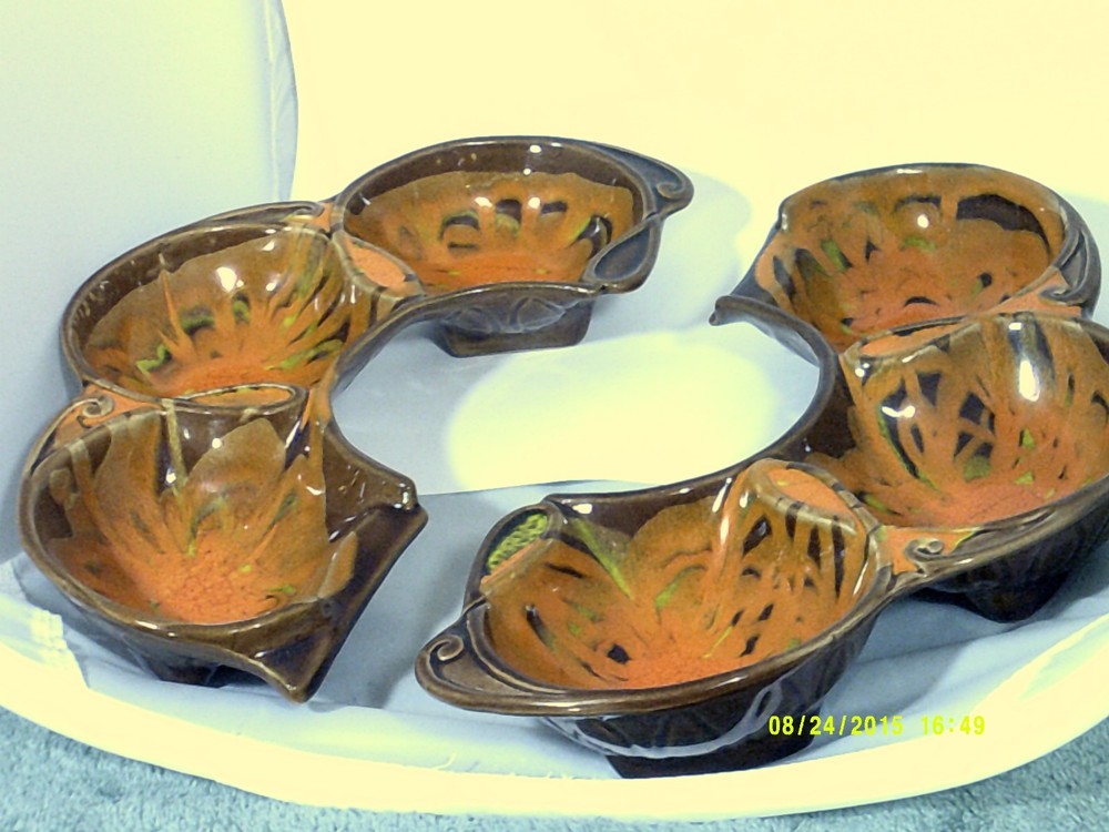 6 Sections, with Covered Dish- 5 pieces. Covered Dish has "CAL ORIG 1192"- on 2 Sections "CAL ORIG 1193". 7.5 LBS UNPACKED Mid Century Modern