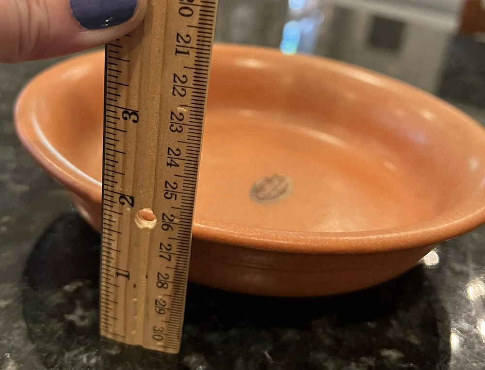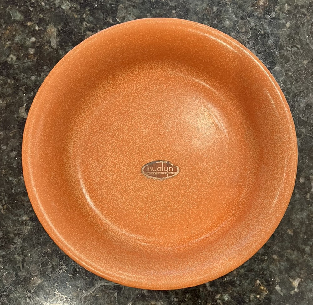 This Hyalyn Porcelain Bowl is a vintage collectible that will add a touch of retro charm to your home decor. With its mid-century modern design and orange color, it is sure to be a conversation starter. Made in the United States in the 1960s, this bowl has stood the test of time and is in excellent used condition. It can be used as a planter or server and still has its original sticker. 8” across and 2” deep. No chips or cracks.