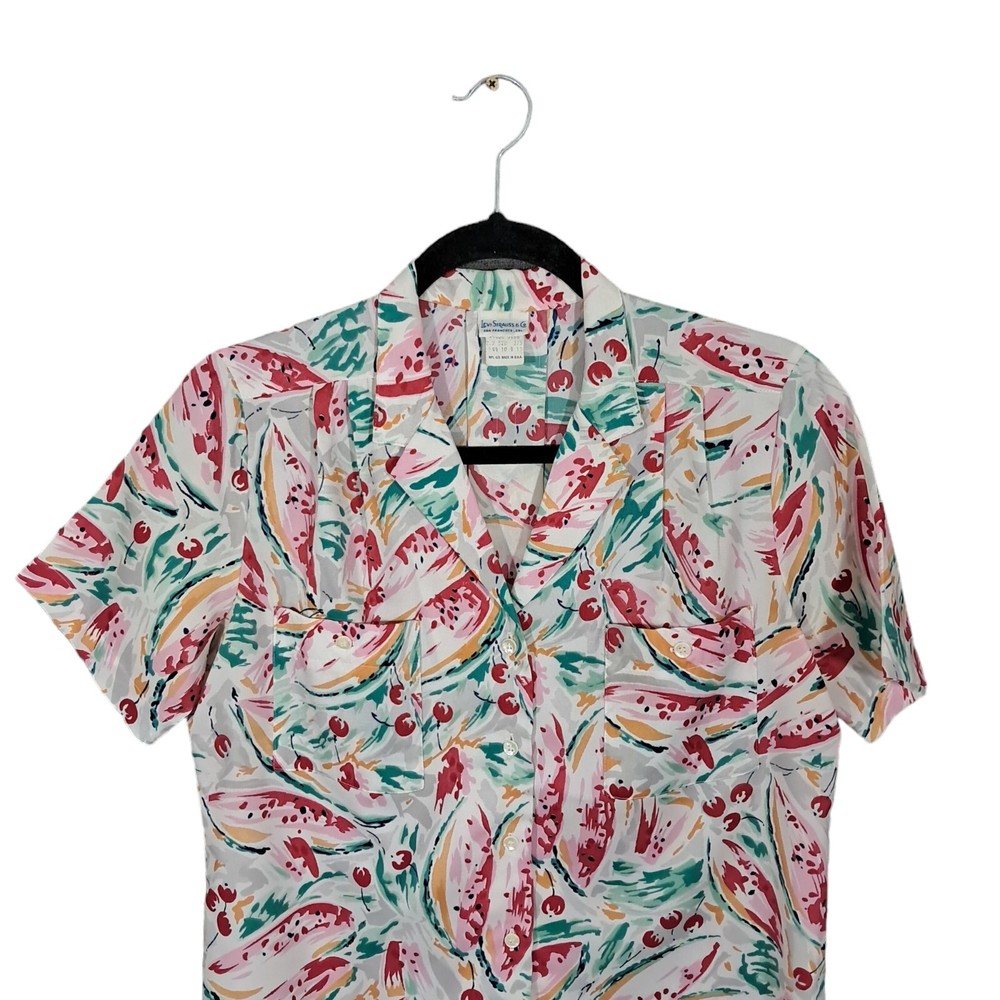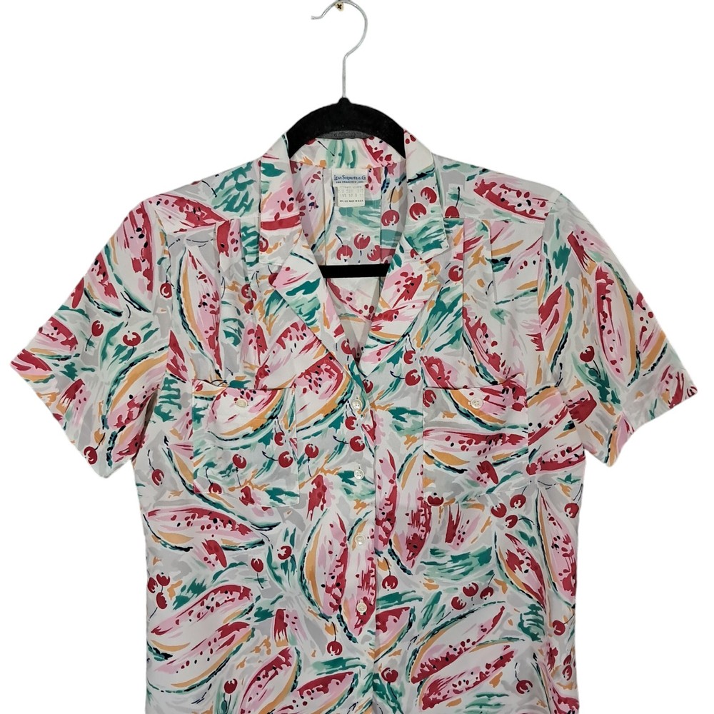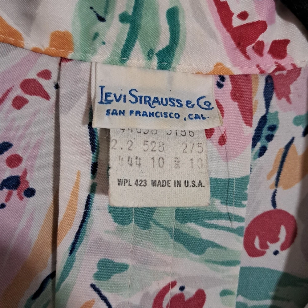 VTG Levi Straus Co Camp Shirt Top Size 10 Artsy Cherry USA 80s Abstract Vintage -Cotton Poly Blend (no tag based on feel) -Made in USA -Machine Wash -Color: Multi Color SIZE: See last picture for measurements. Flat measurements (multiple x 2 for waist, bust, hips) CONDITION: Pre owned condition with no known defects. Please see pictures for accurate description. Smoke and pet free home. SHIPPING TIME: Will ship all items within 1 business day