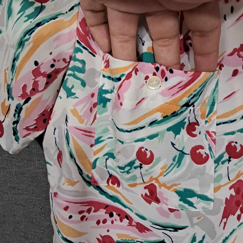 This vintage Levi’s camp shirt is a total gem! The artsy cherry print gives off major ‘80s vibes, and the cotton-poly blend makes it super comfy. Love that it’s made in the USA and in great pre-owned condition—no flaws at all. Fits true to size based on the measurements, and shipping is lightning-fast. Perfect for adding a retro touch to any outfit!