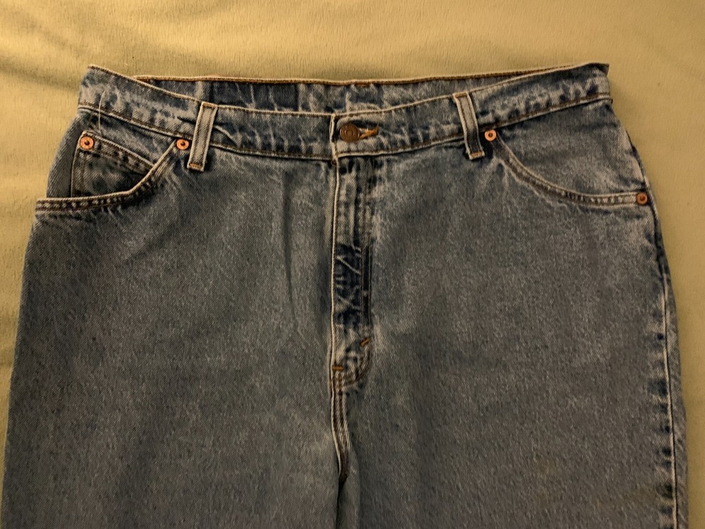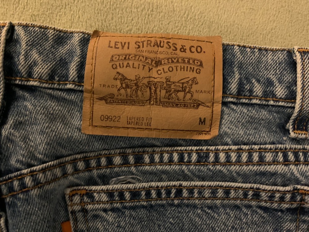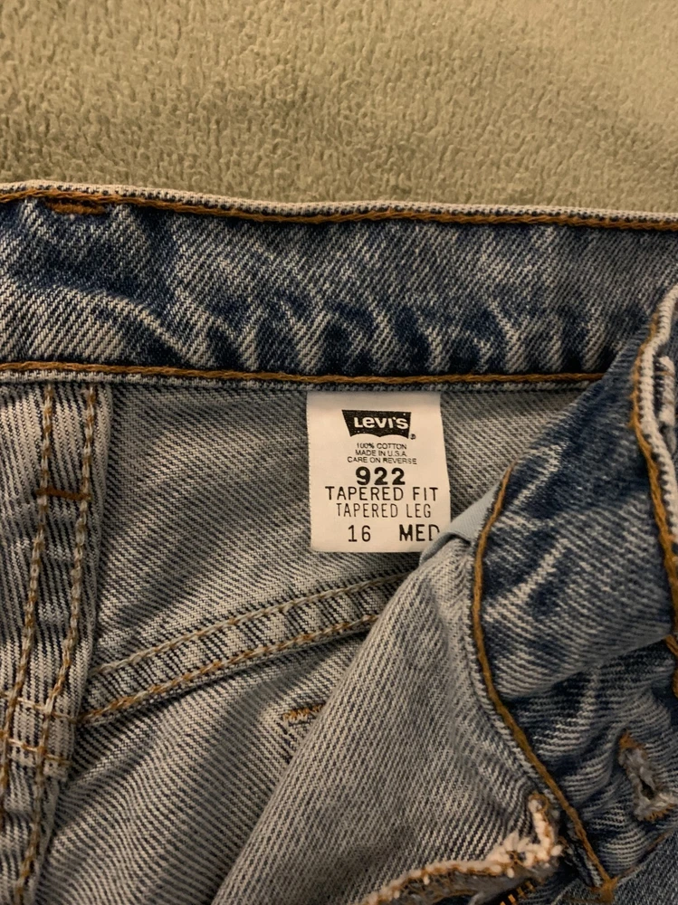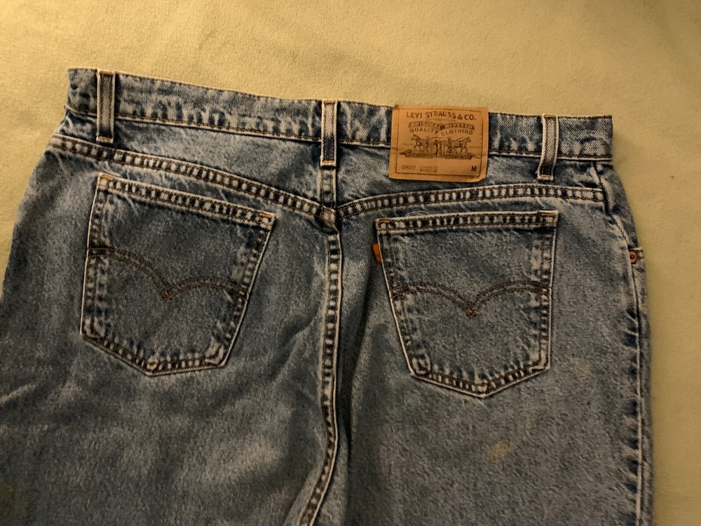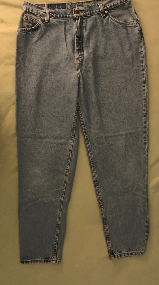Elevate your denim game with these vintage Levi's 922 Orange Tab jeans. The high-rise, tapered leg fit pants are made of 100% cotton denim, and feature a medium wash, 5-pocket design, and button and zipper closures with belt loops. The solid blue color and Levi's logo accents add a touch of 90s nostalgia to the relaxed fit jeans, which are perfect for any casual occasion. The waist size is 35 inches and the inseam is 30 inches, making it a great choice for women who want to show off their unique style. These pants are machine washable and were made in the United States, ensuring both quality and durability.
