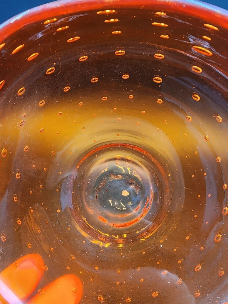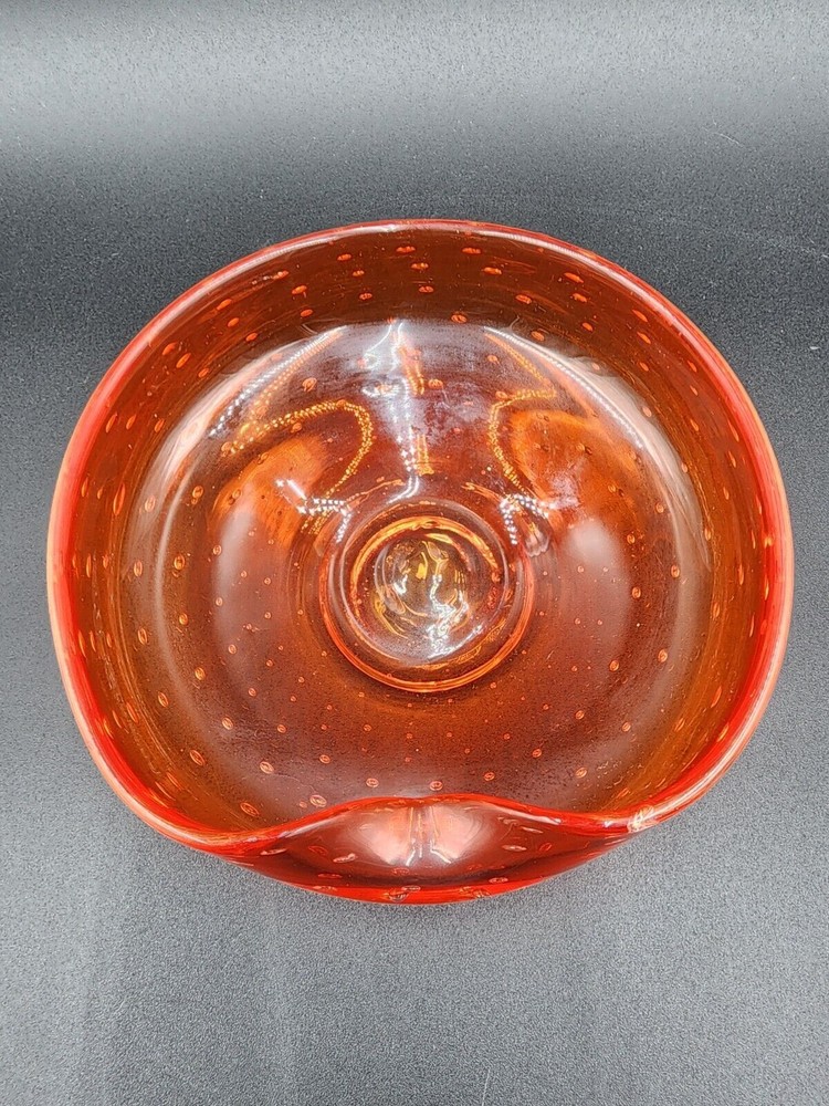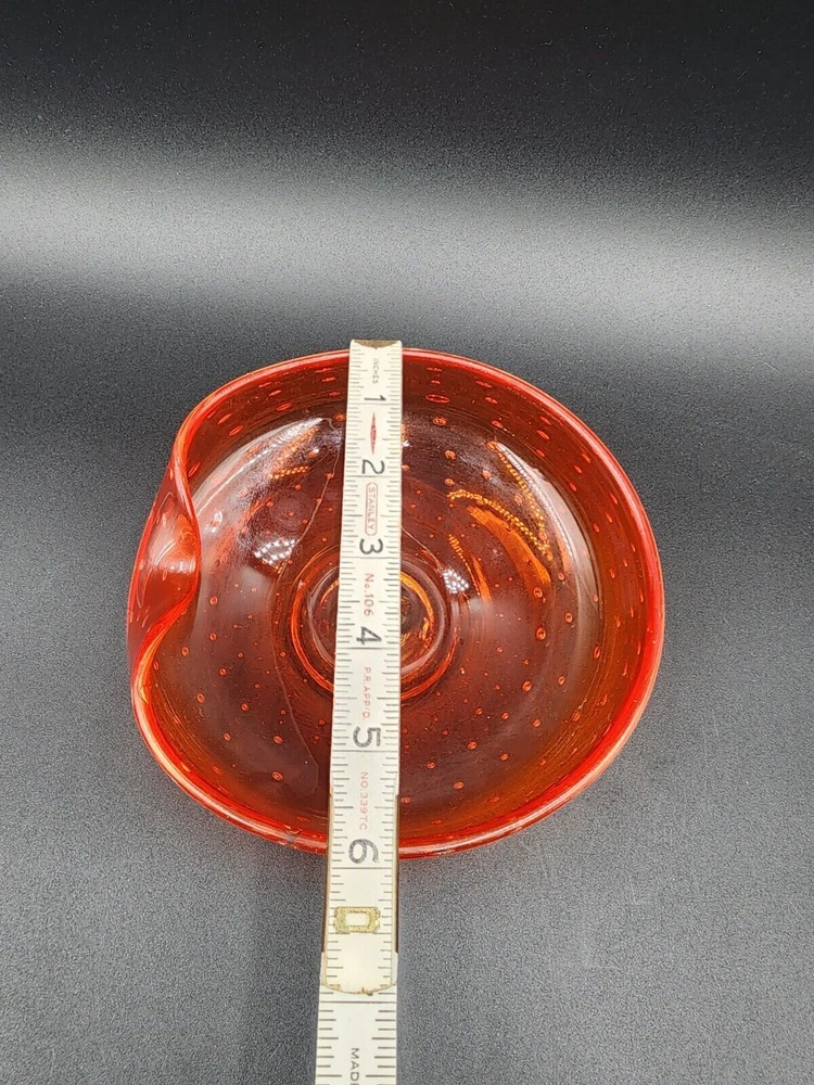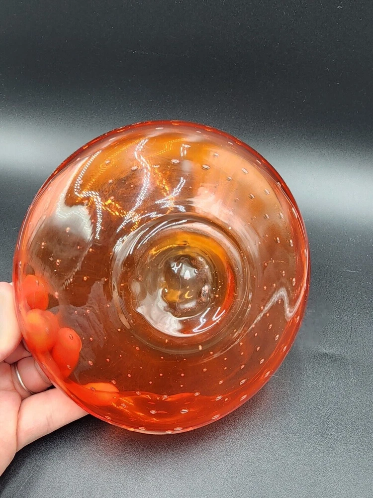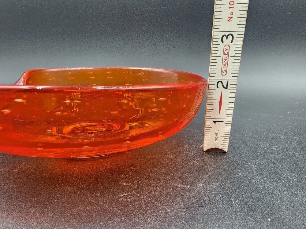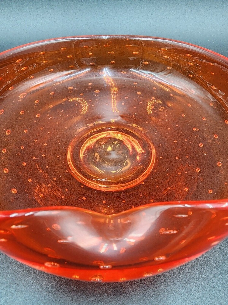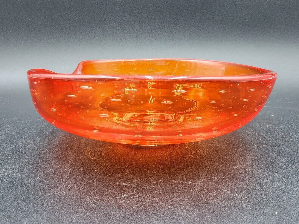 VTG Mid Century Controlled Bubble Orange Glass Ash Tray 5 7/8” No chips or cracks, gently pre owned Listing and template services provided by inkFrog