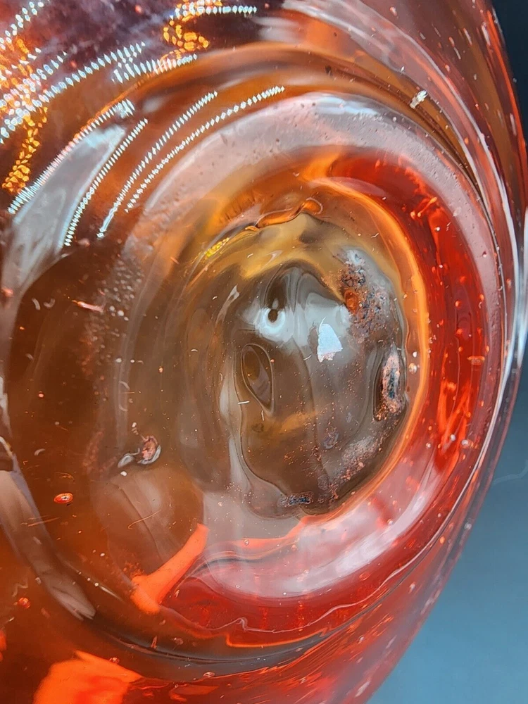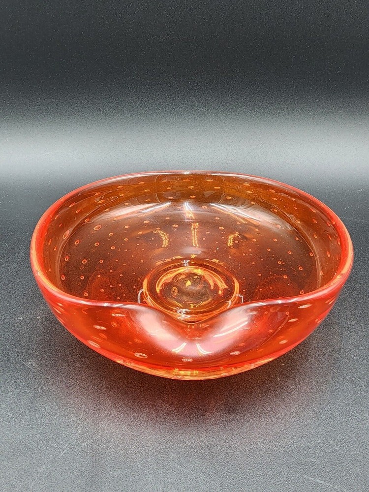 VTG Mid Century Controlled Bubble Orange Glass Ash Tray 5 7/8” No chips or cracks, gently pre owned Listing and template services provided by inkFrog...