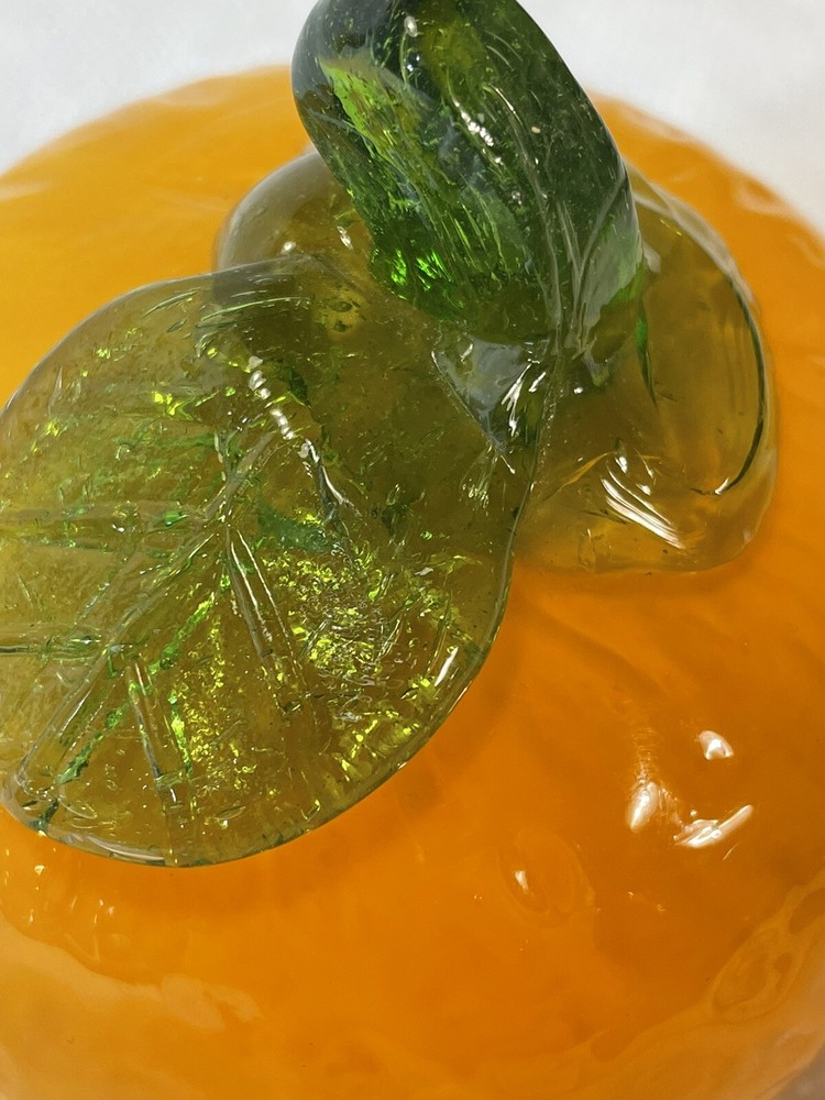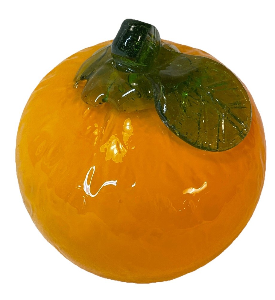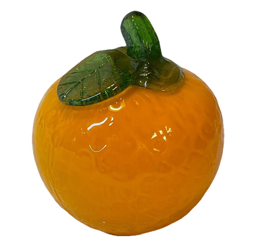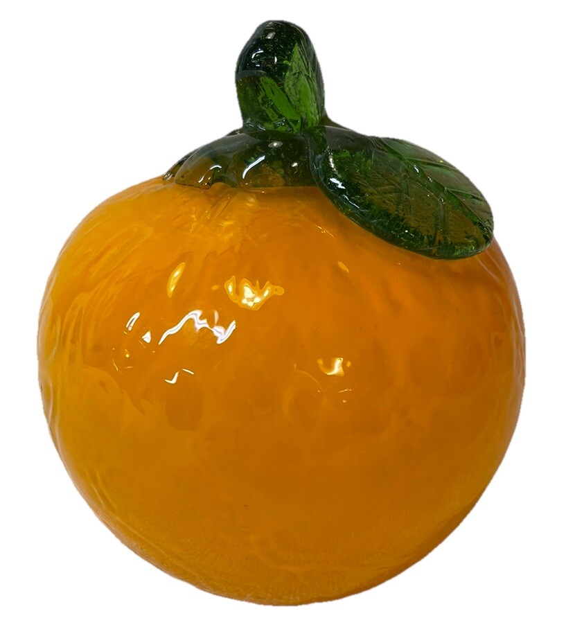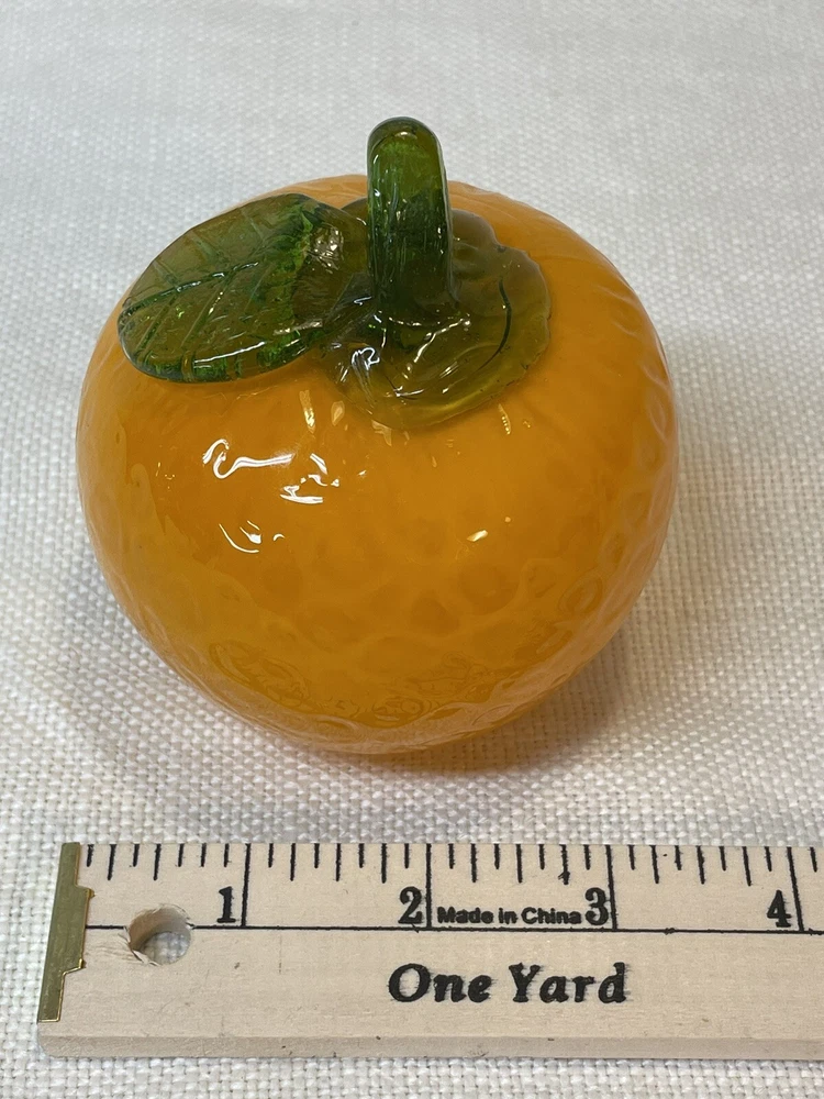 Vintage Hand crafted Murano Style Hand-Blown Glass Orange. With its vibrant orange color and detailed green stem and leaf, this art glass piece is the perfect decorative item for any space. Size is approximately 3.5 inches tall Each detail, from the smooth curves of the orange to the intricate glass leaf, showcases the skill and craftsmanship involved in creating this stunning piece. Key Features: Murano Style Hand-Blown Glass: A nod to the renowned glass-making traditions of Murano, Italy Dimensions: Approximately 3.5 inches in height Condition: Excellent condition with no chips, cracks, or visible damage. This glass orange makes a great addition for collectors of art glass or anyone looking to enhance their space with a one-of-a-kind decorative piece. Shipping: FREE shipping from a smoke-free home. Item will be securely packaged to ensure safe delivery.
