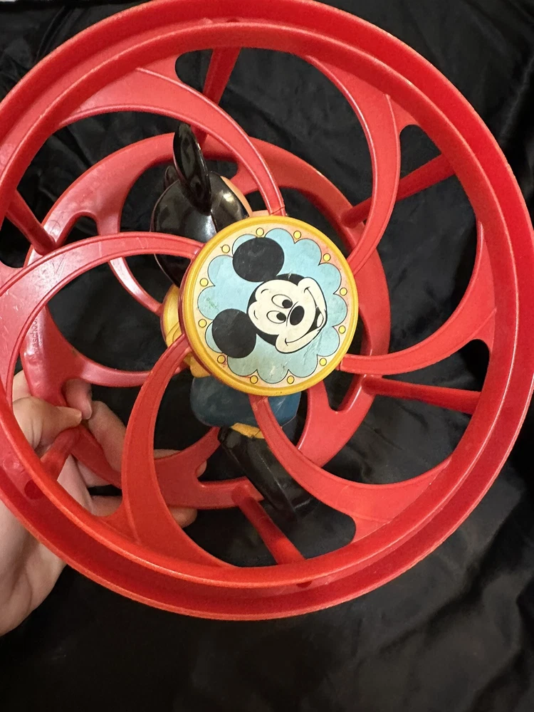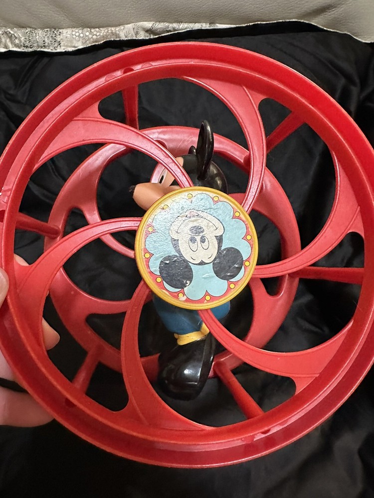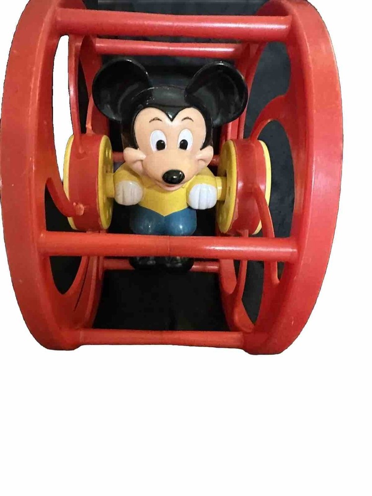 Vintage The Walt Disney Co & ILLCO MICKEY MOUSE ROLL BACK WHEEL Toy 1980's. This is a preowned item with signs of wear please look at all photos because they are part of description...