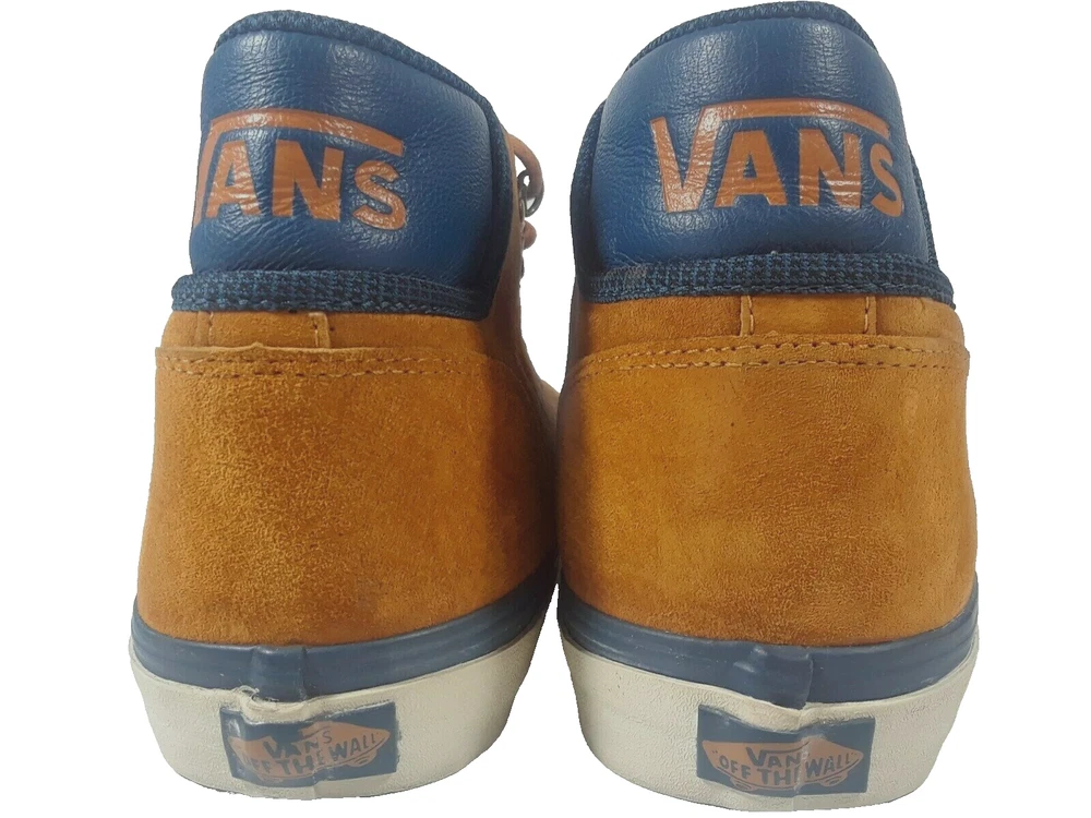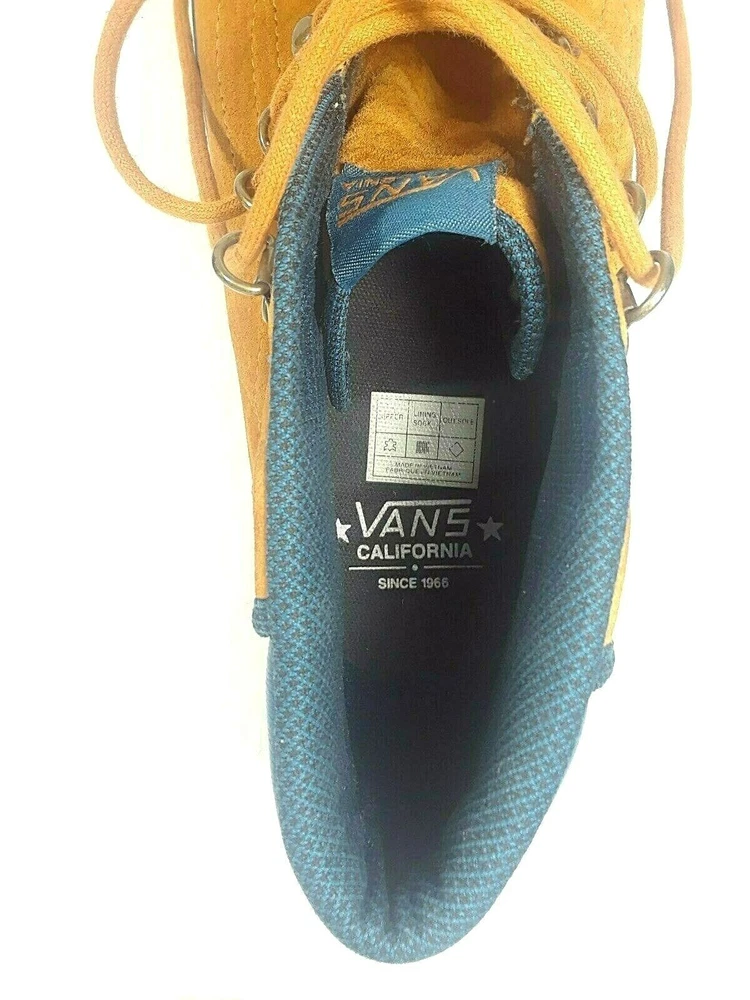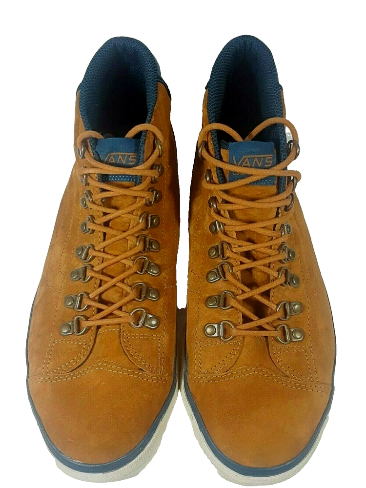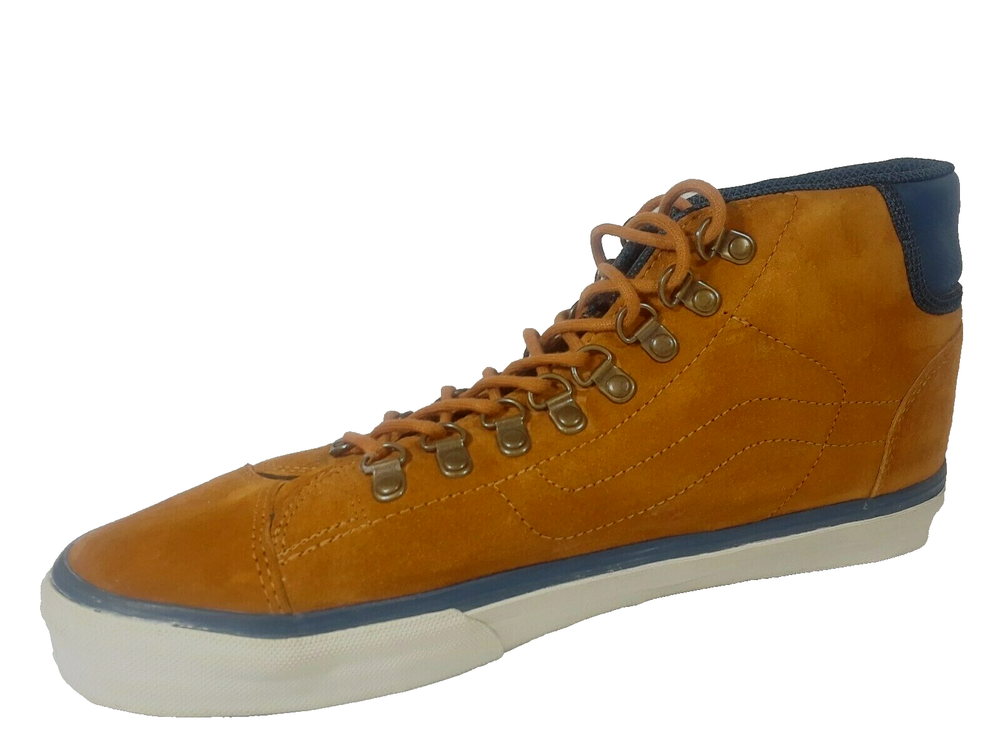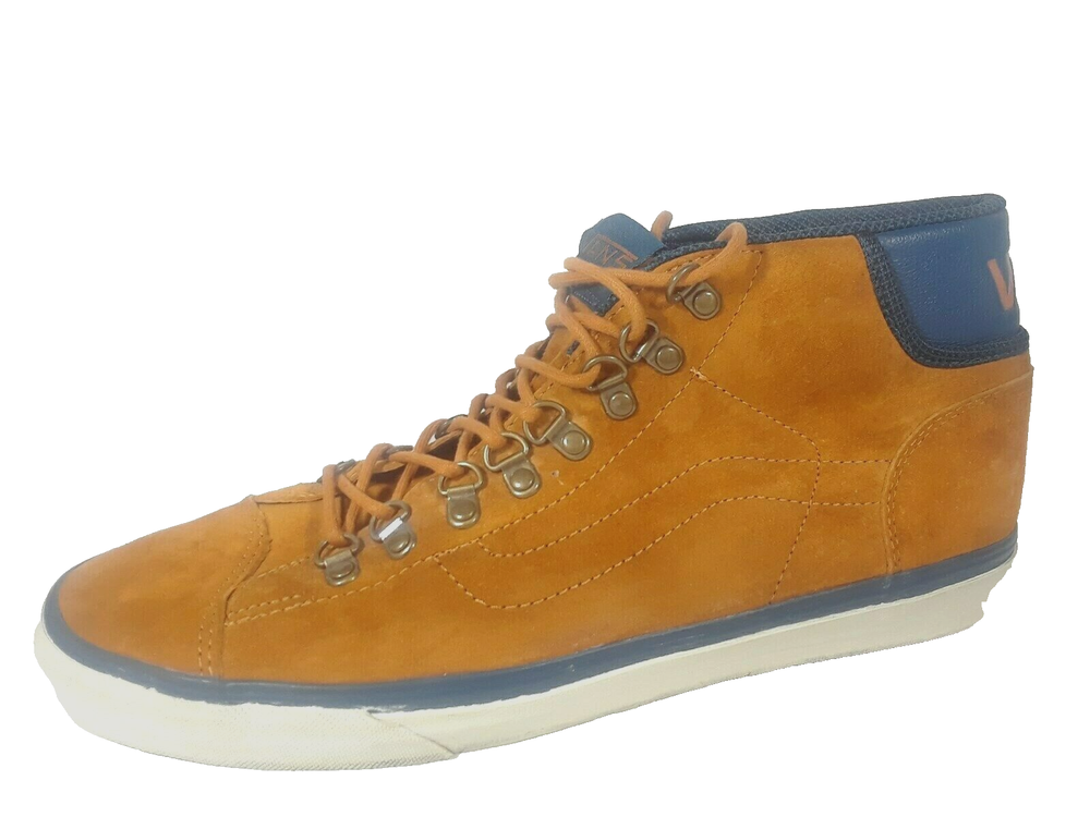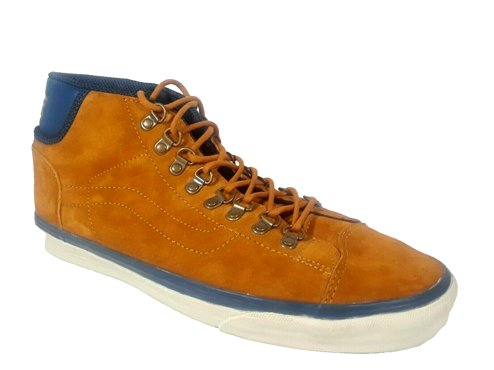 Vans California Mens Size 12 Mid Top Suede Pumpkin Spice Lace Up Shoes Sneakers Shipped with USPS Priority Mail Great condition, no stain, clean. Worn several times Men's size 12 - brass hardware - suede - 2 little plastic tips on the end of the shoelaces are missing - model # TB4R