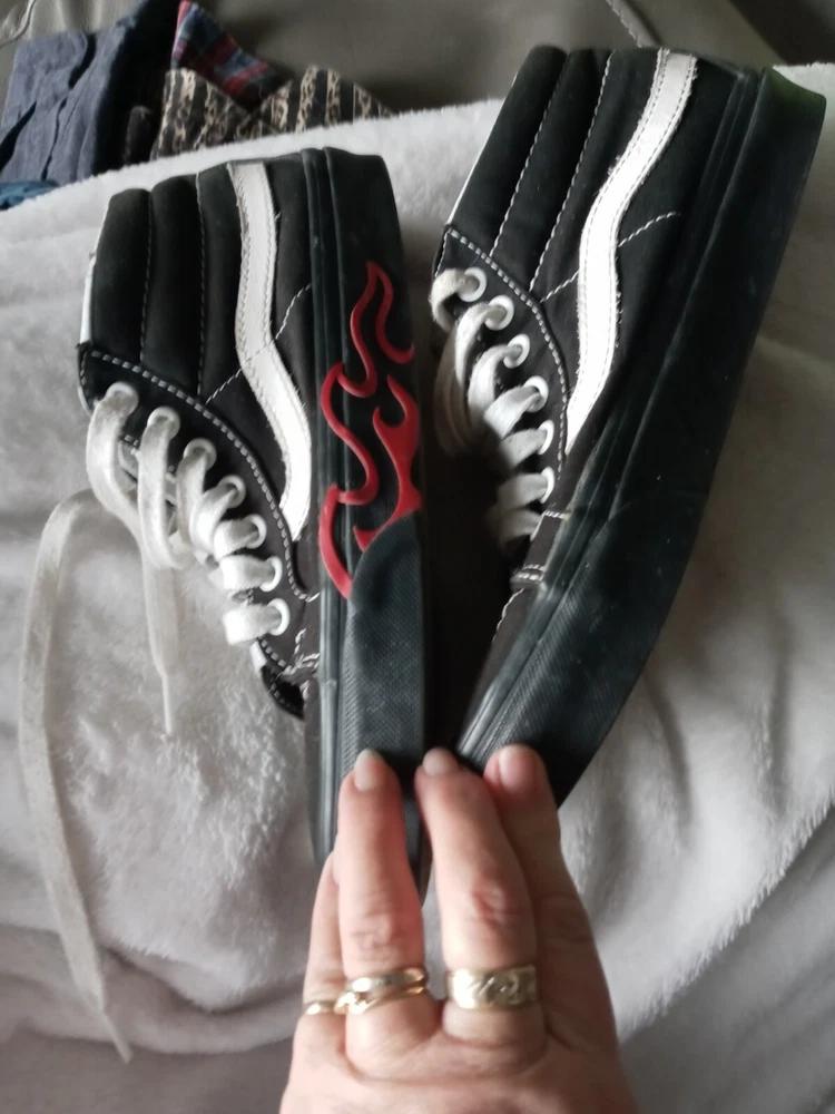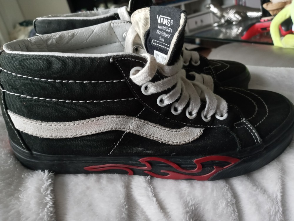 VAN'S SK8- MID FLAME SKATEBOARDING SNEAKERS MEN 6.5 WOMEN 8 SOME MINOR WEAR INSIDE