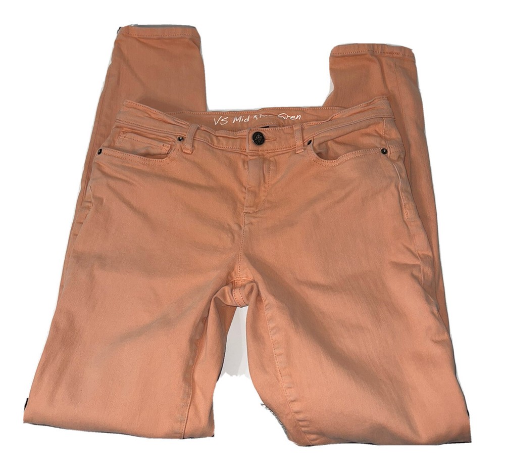Victorias Secret Mid Rise Siren Skinny Jeans. Size 6. Coral Pink with orange undertones. Denim. No stains or holes . Measurements done flat- Waist-15” Inseam-30”