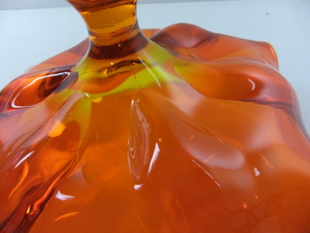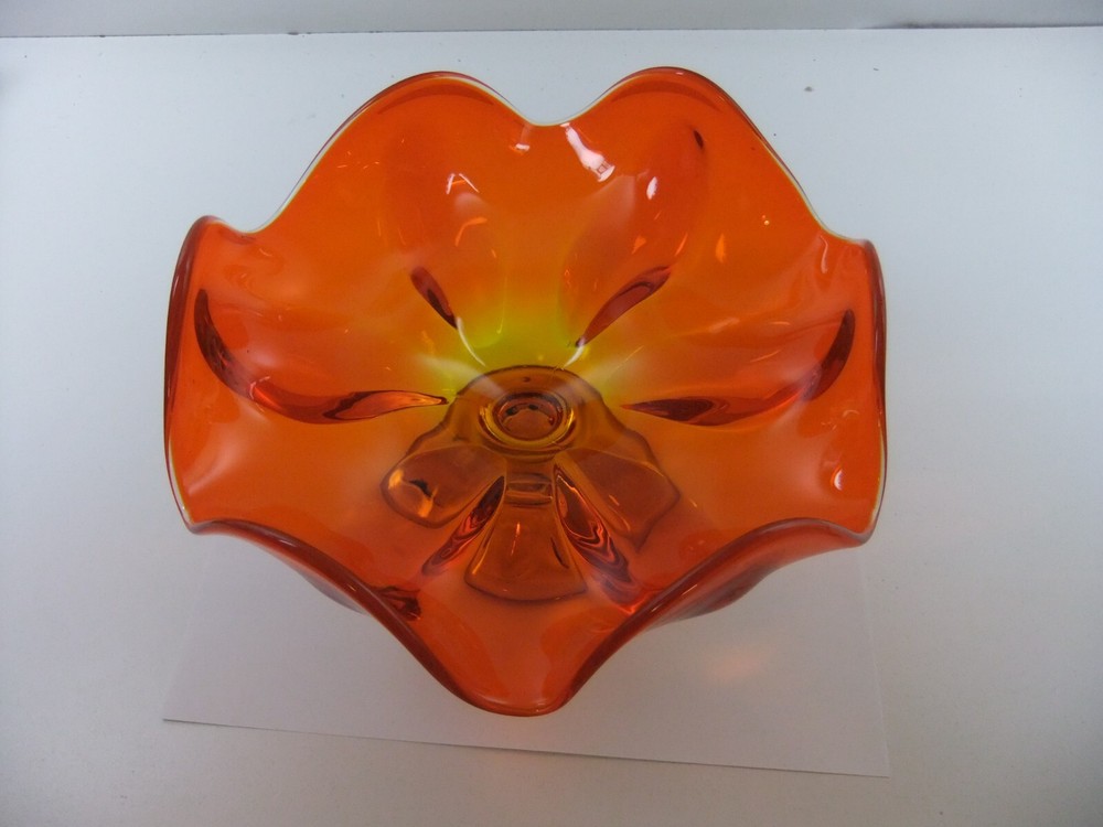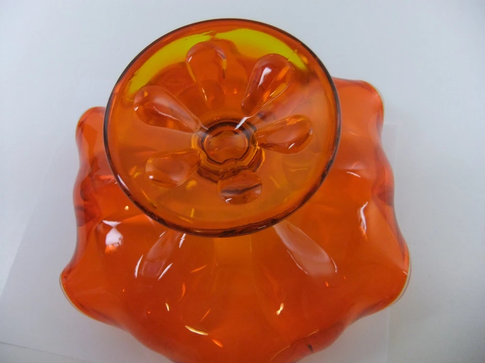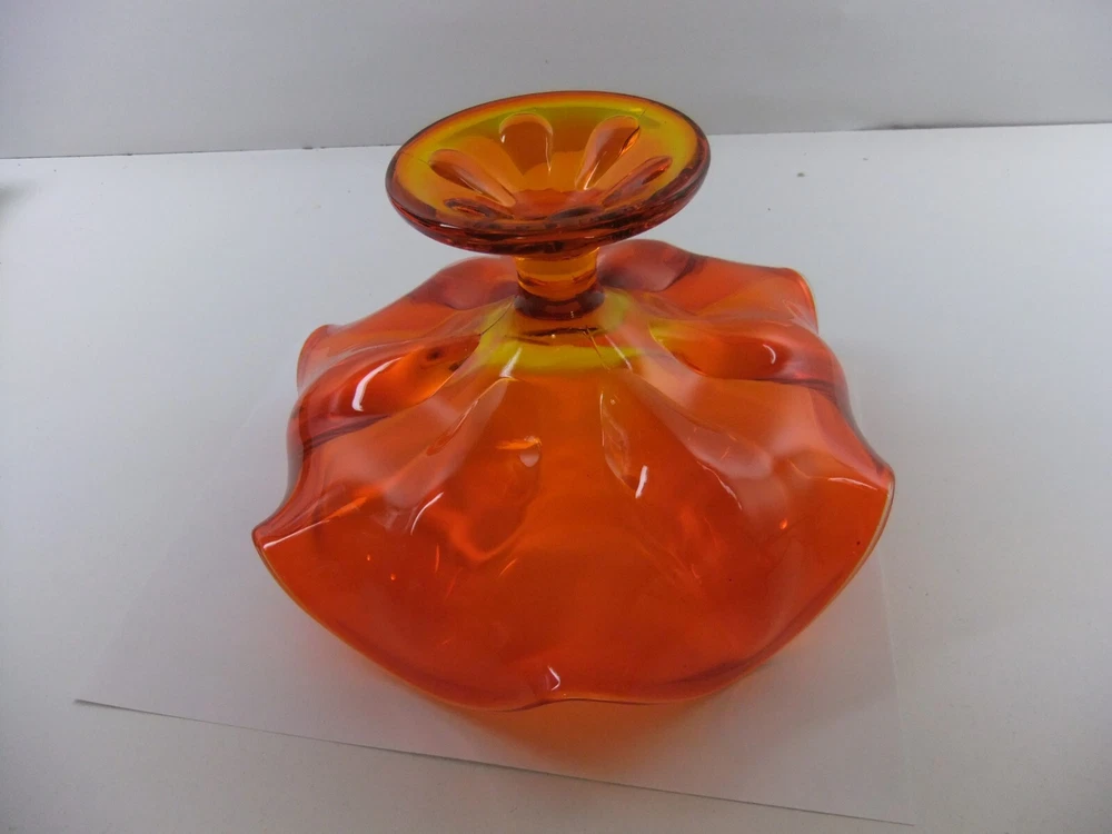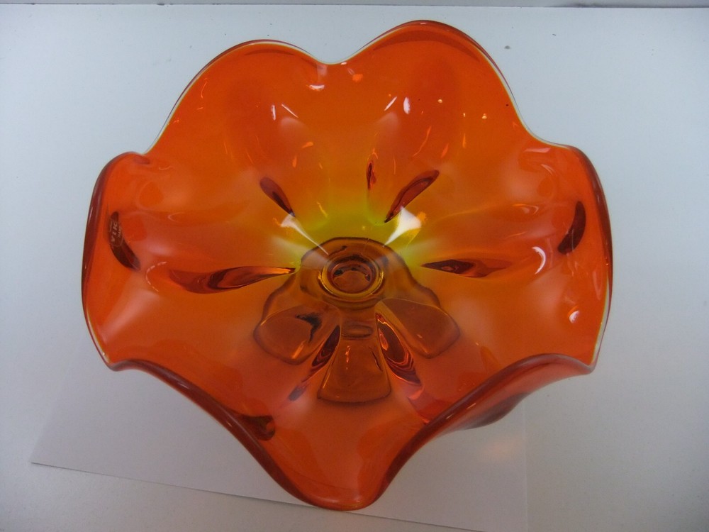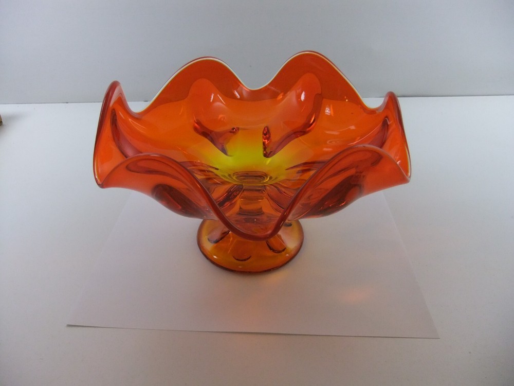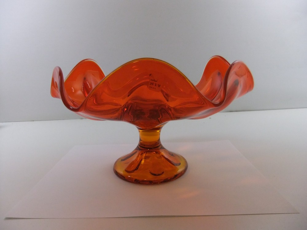 DESCRIPTION AND CONDITION Viking Glass amberina orange pedestal dish or bowl. It measures about 9” wide across the top. It stands about 6” high at the top of the petal. It is in a nice used condition. There are a few minor flaws/inclusions. There label/sticker is a partial sticker. Please review the photographs and email me if you have any questions or want additional photographs. I mainly sell used older items including antiques, collectibles and oddities so please expect some signs of wear from use. I will identify or describe any unusual or notable wear and damage in the description of the item or in the photographs but please email me if you have specific concerns I have not addressed. Please contact me if you experience any issues viewing or trying to purchase this item. SHIPPING and RETURNS Domestic Sales: Please let me know if you’re unhappy with any item(s) for any reason and I will refund you your money less my shipping costs once I receive the item(s) back. If there is damage, or I have not described it accurately, or shown defects or the product well I will do a complete refund and pay for your return shipping. International Sales: I ship through the Ebay International Shipping Program. Please refer to their policies for specifics that apply to the buyer. Multiple purchases will be combined for shipping when possible. I might discount for multiple purchases. Please contact me first before buying so that we can adjust the prices. If you want to ship to a PO Box please check with me before combining purchases as some items can only be shipped by FedEx or UPS and they do not deliver to PO Boxes. With the ever changing costs and regional service adjustments by all shipping services I will choose the best value/service depending on your location. If you have concerns about this please contact me before bidding/buying.