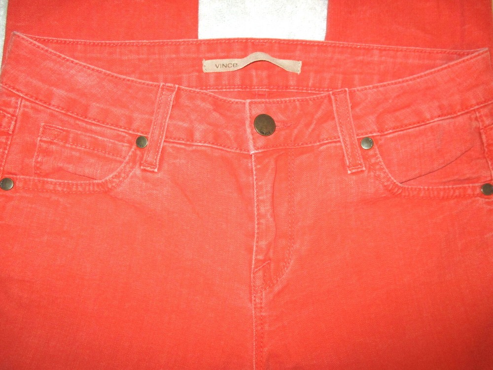 Vince Designer Jeans Crop Skinny Ankle Stretch Womens Red/Orange (Tomato) Jeans Size 27, USA made, retail $89 plus Condition: Very good condition. Nice medium red/orange color wash (Tomato). Awesome designer jeans found at Saks, Nordstrom and more. Size Tag Reads: : 27. Waist : 29” with waist aligned Hips : 34" Rise : 8 " Inseam : 30" Leg opening at bottom : 5 1/4" 98% Cotton % Polyester 2% Spandex Zipper Fly If you have any questions, please ask. Thank You for shopping Doug's Dapper Duds! Happy Bidding. (3.11) Helpful Hint: When buying online it is strongly recommended that you measure your favorite 1-3 pair of jeans and compare them to the measurements provided to insure a good fit. Shipping: Item is shipped within 24 hours after payment is received unless specified differently under handling time. International Orders: Combined shipping discounts are not available. Buyers are responsible for all import duties, taxes, or customs fees. In most cases packages arrive within 2-4 weeks of shipment. However, due to slow customs processing deliveries can take several weeks longer. Online tracking numbers are not available. Customs documentation will not be altered. Customer Service: We answer questions Monday thru Friday (except holidays) during normal business hours (PST). Please be sure to include the item number when asking questions.